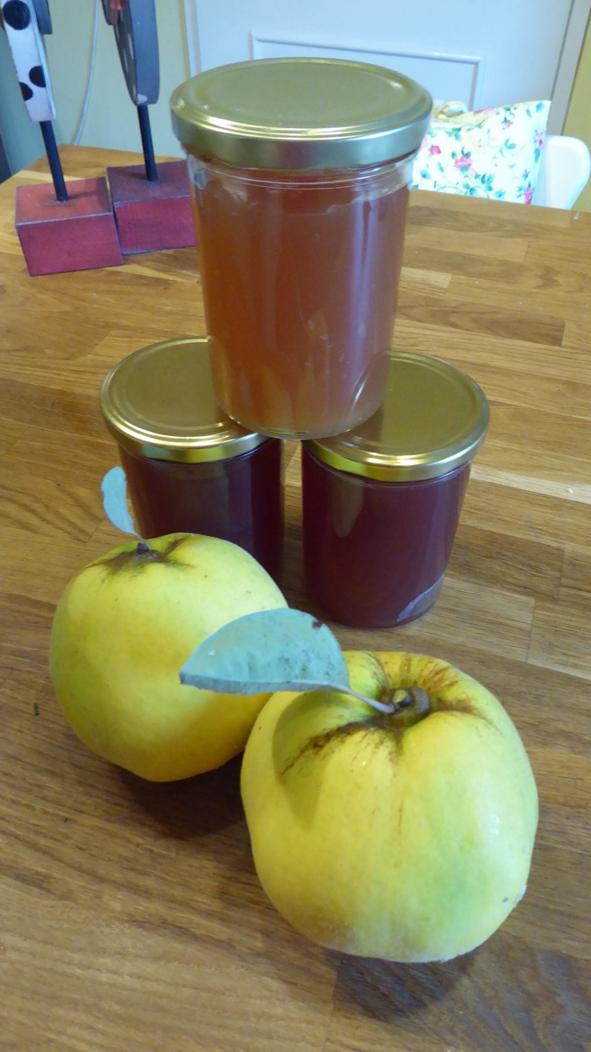 Nun stehen wir jedes Jahr vor dem Problem, was machen wir Schönes draus. Wir haben Selbstversuche mit Chutney hinter uns, was keiner  isst, dann Quittengelee pur, mag auch nicht wirklich einer und Quittenmarmelade ist hier ebenfalls kein Highlight, Kuchen haben wir auch probiert, wird sicherlich nicht unser Favoritenlieblingskuchen.