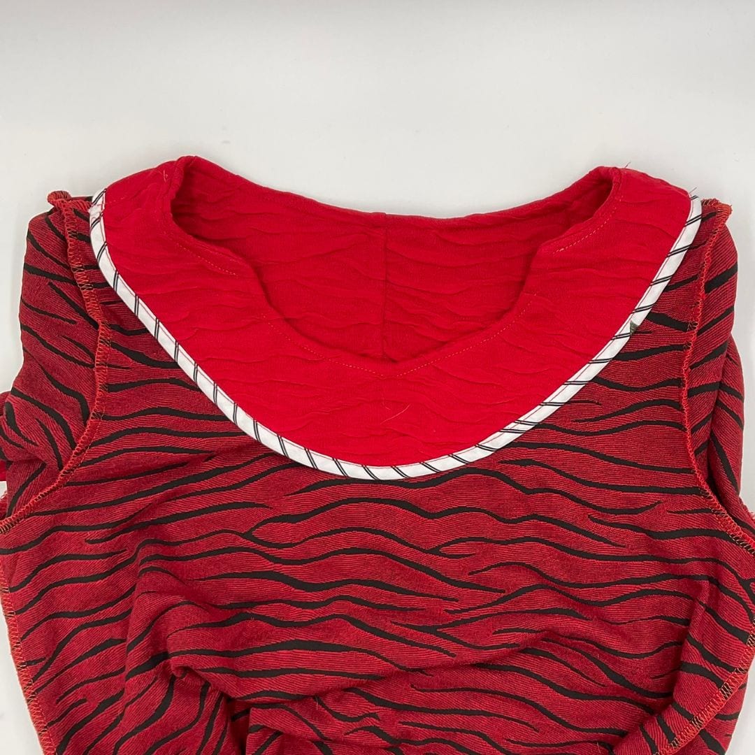 Wir verarbeiten Schrägband relativ häufig. Schrägband gibt es in vielen verschiedenen Breiten und Farben, aber selten hat man eine größere Auswahl zu Hause und noch seltener passen die Breite oder Farbe. Zudem lassen sich die Stoffreste sinnvoll verarbeiten und veredeln Dein Kleidungsstück. Uns ist immer wichtig, dass es auch innen perfekt verarbeitet ist und damit toll aussieht.