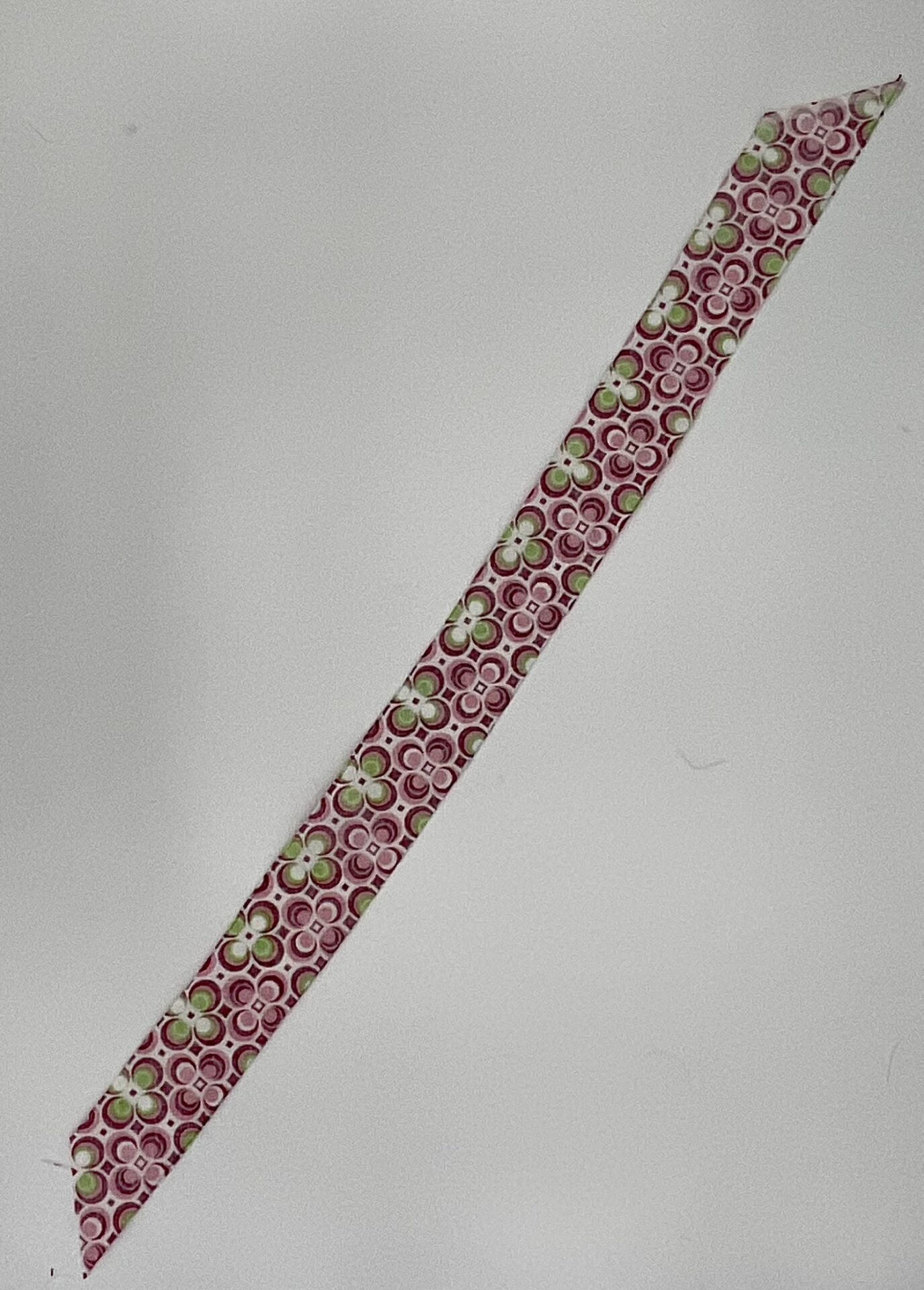 Wie Du Dir Dein Schrägband selber herstellen kannst, zeigen wir Dir in diesem Tutorial. Hier haben wir uns ein Schrägband zum Versäubern des Belegs (auch Blende genannt) zugeschnitten: