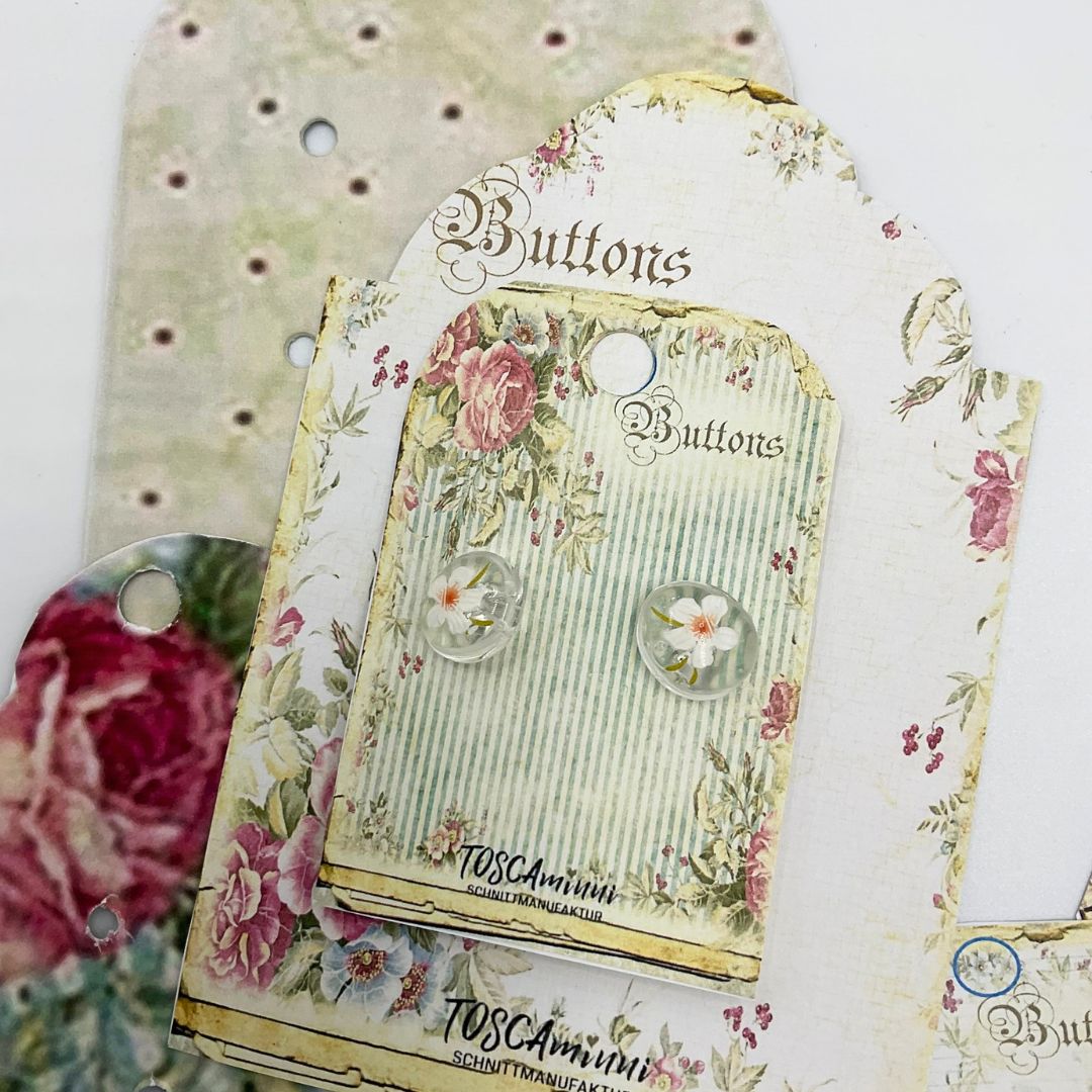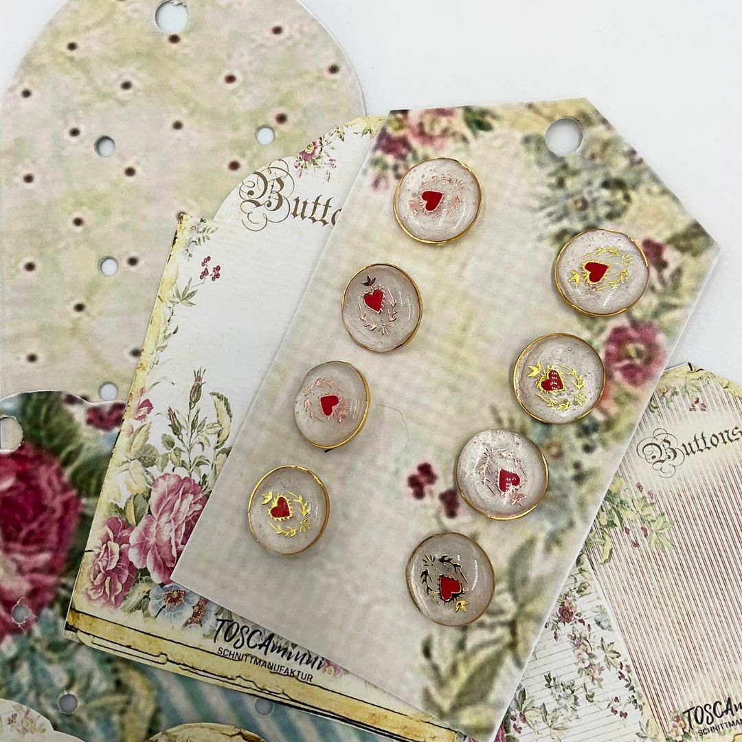 Erinnert ihr euch noch an die Knopfkärtchen, auf denen früher Knopfsortimente aufgenäht waren? Während ich meine eigenen Knöpfe produzierte, fiel mir diese Idee wieder ein. Also habe ich meine eigenen Knopfkärtchen hergestellt und meine Knöpfe darauf aufgenäht. Es sieht einfach toll aus und weckt nostalgische Gefühle. Ich liebe es, wie diese kleinen Details meine Arbeit aufwerten und für eine besondere Note sorgen.