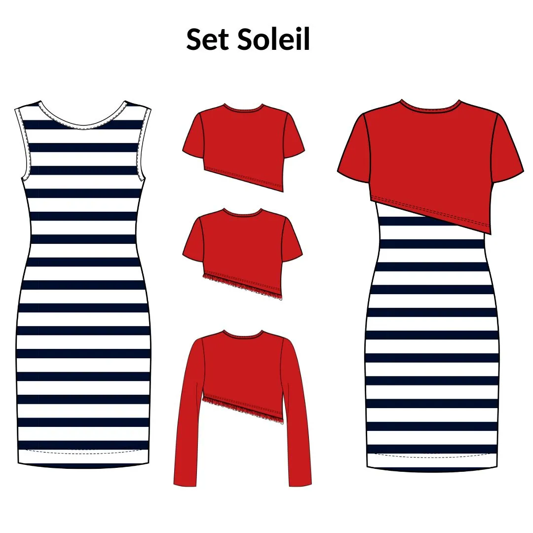 Den Schnitt bekommst Du jeweils einzeln (>>Kleid Soleil) oder im Angebot als >>Set-Soleil mit dem >>Shirt Frauke.