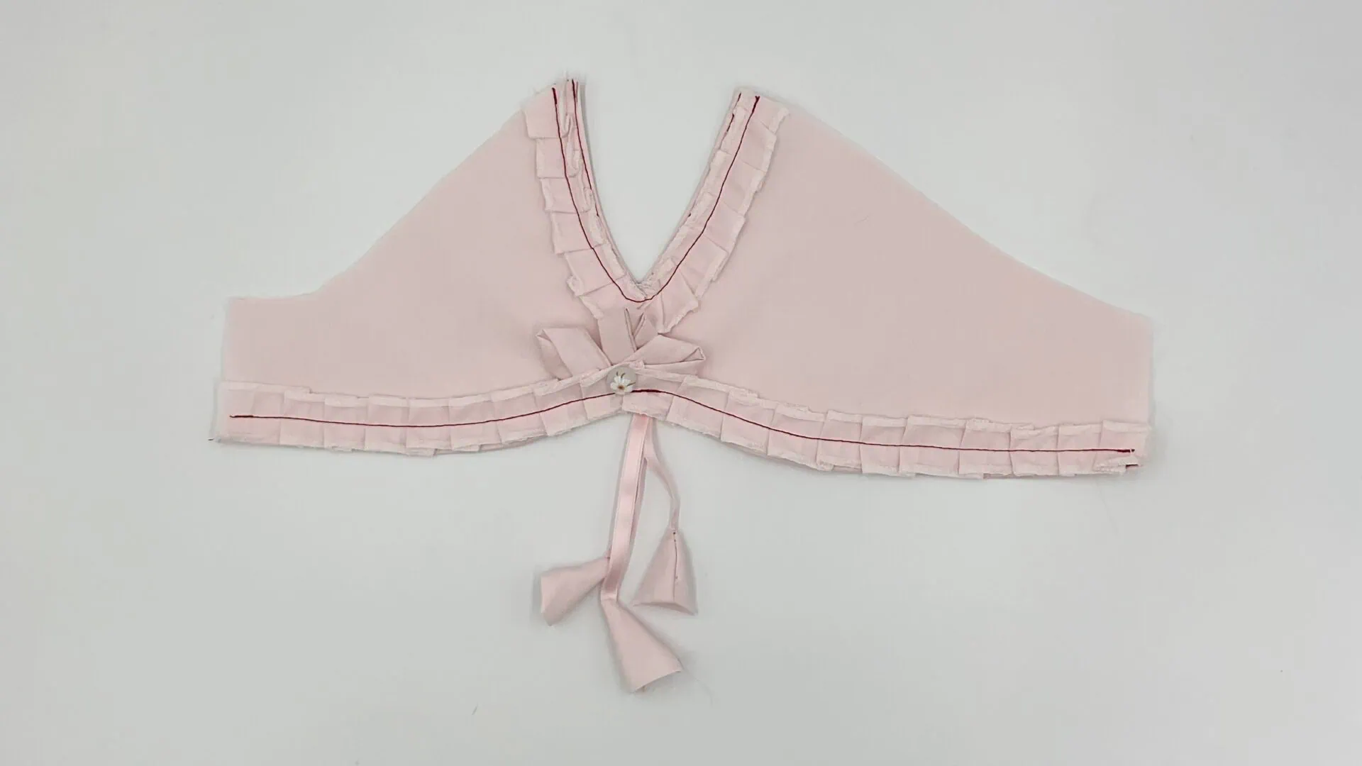 Nun die drei kleinen Schlaufen am Ärmelsaum drapieren, so dass eine Art Blume entsteht und fixieren.
