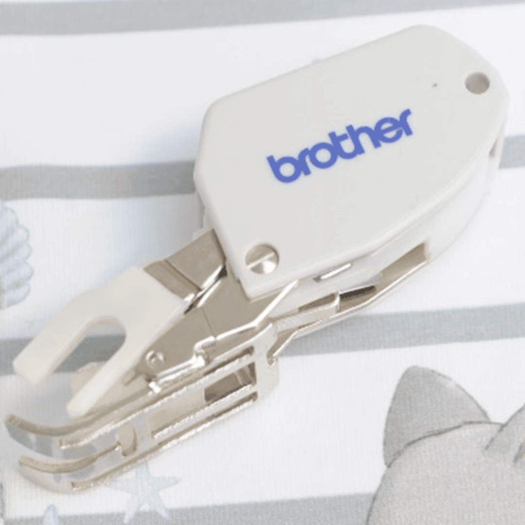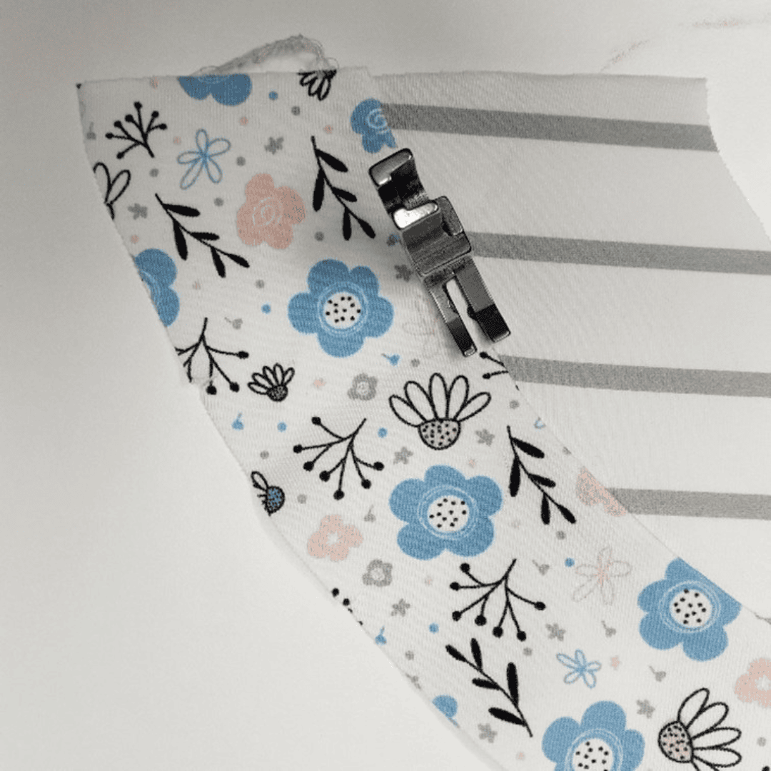 Für die meisten Nähmaschinen gibt es einen speziellen Kantenfuß, mit dem Du die Nähte ebenfalls toll absteppen kannst. Der Fuß lässt sich exakt an der Naht führen. Die Nähmaschine musst Du auch hier wieder richtig einstellen, in diesem Fall die Stichlänge – wir verwenden Stichlänge 4.