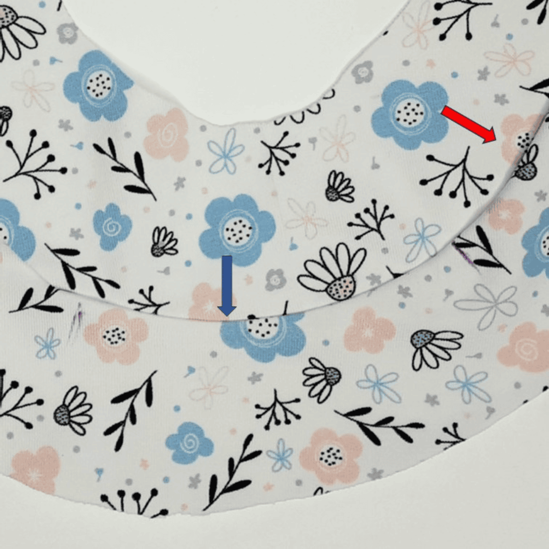 Hier siehst Du die kleinen Einschnitte – diese benötigst Du, um die Teile genau zusammennähen zu können – die Passpunkte liegen beim Nähen aufeinander.
