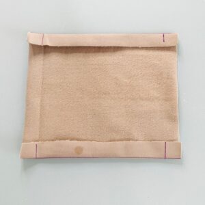 Nahtzugabe am Eingriff nach links bügeln. Auf beiden Seiten einschlagen. Bügeln.