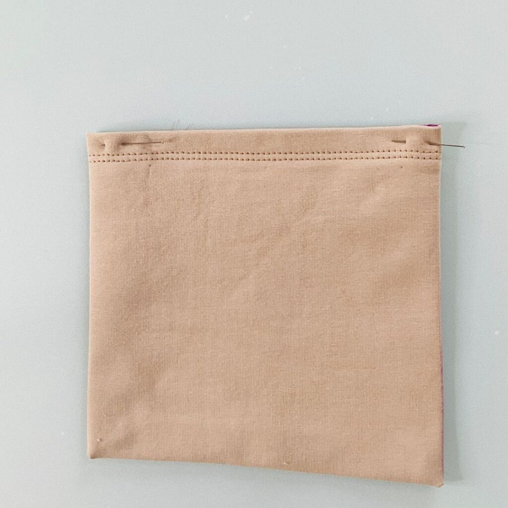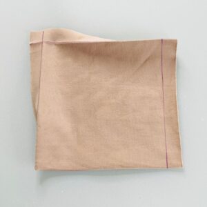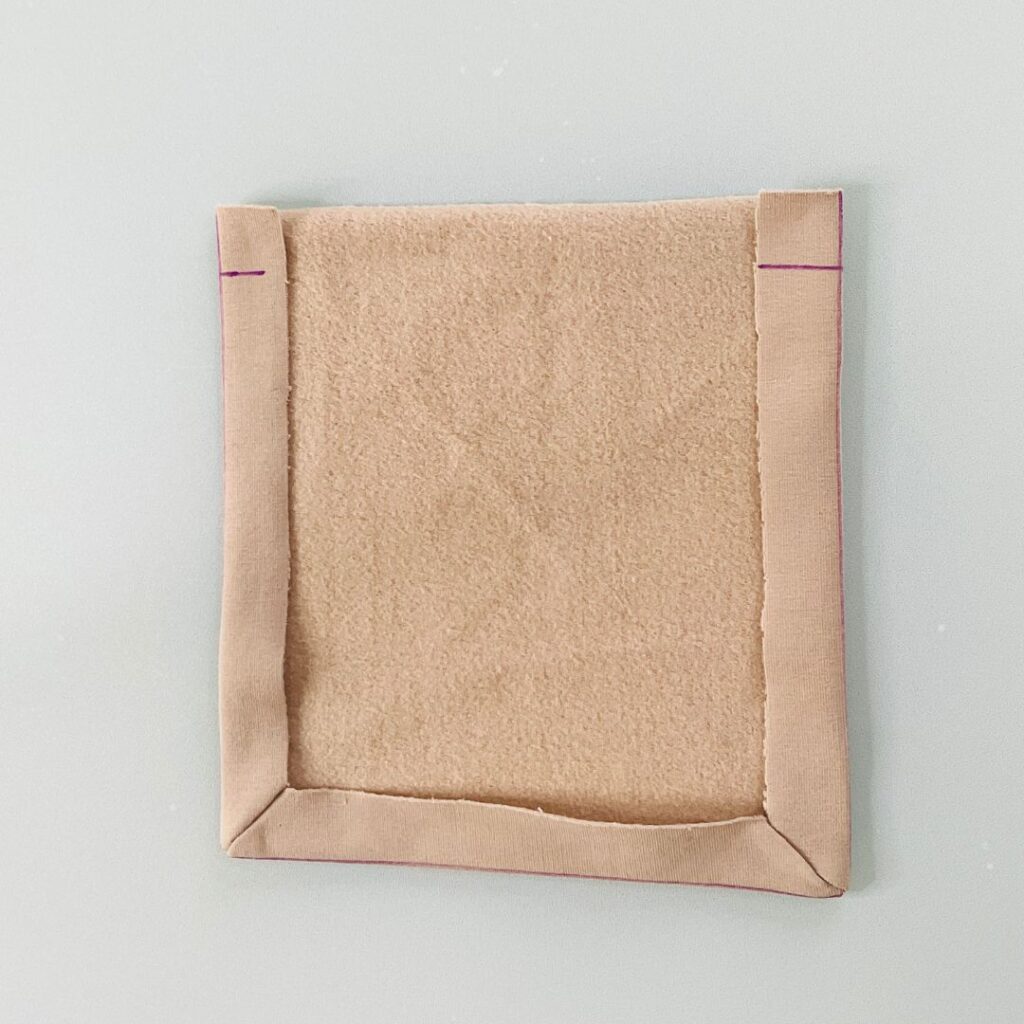 An der Linie die Ecke nun rechts auf rechts so zusammenklappen, wie hier auf dem Bild zu sehen. Ecke abnähen