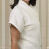Je nach gewähltem Stoff entsteht ein unterschiedlicher Stil: Leichte Materialien wie Musselin, Viskose oder Leinen lassen die Bluse sanft fließen, während festere Stoffe wie Waffelpiqué für mehr Struktur sorgen und den sportlichen Charakter betonen – besonders sichtbar an Kragen und Ärmelaufschlägen.
