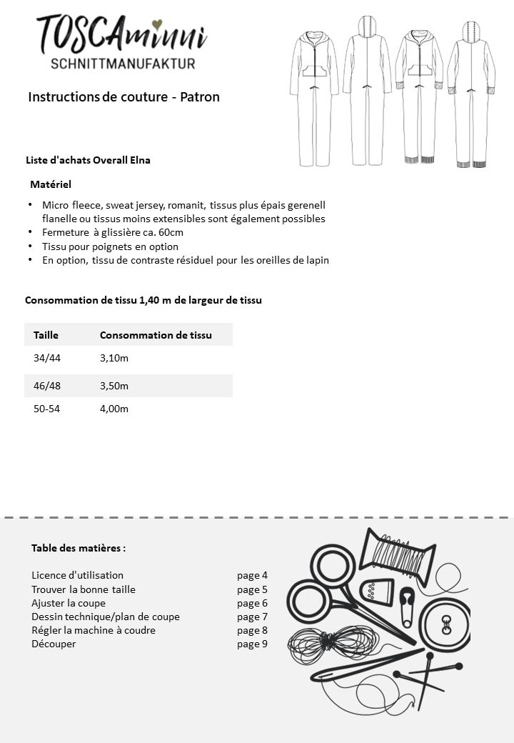 Détails du patron combinaison Elna: