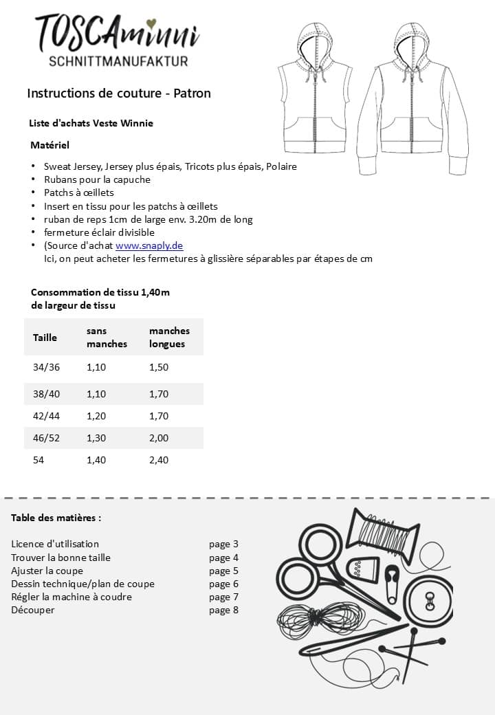 - Tissu conseillé : tissus épais, polaire, jersey sweat, french terry