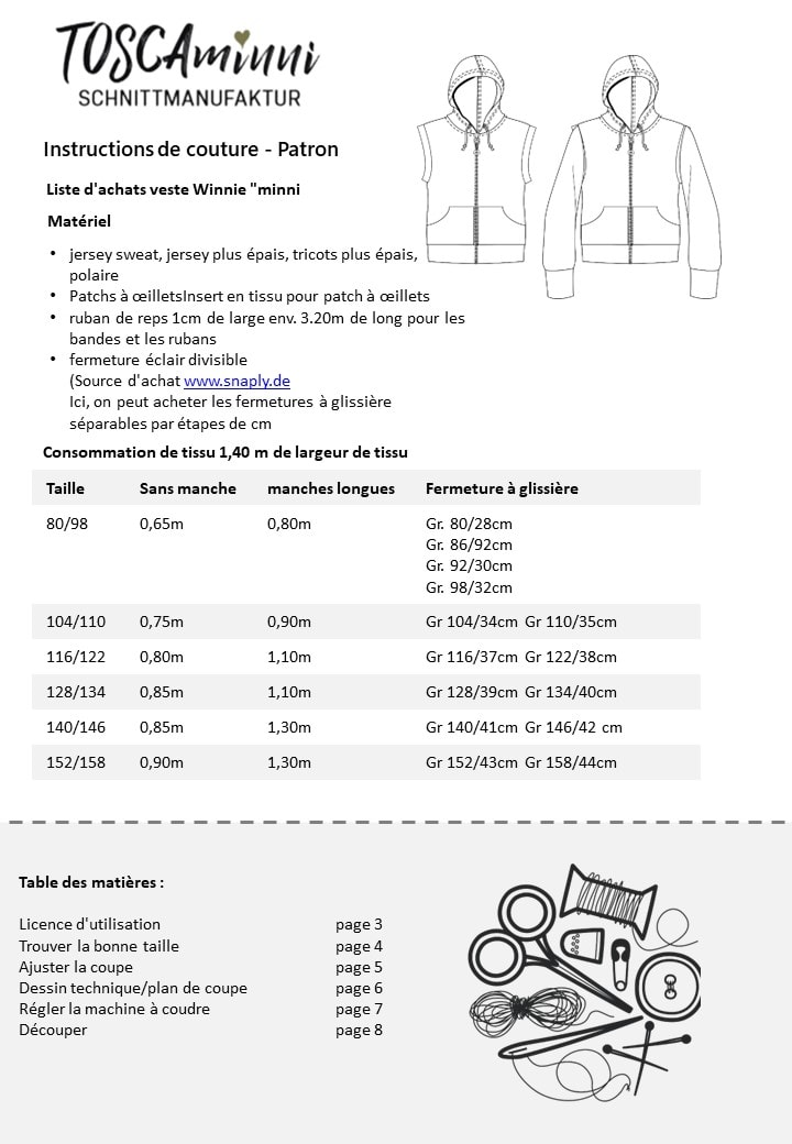 • Tissu conseillé : tissus épais, polaire, jersey sweat, french terry