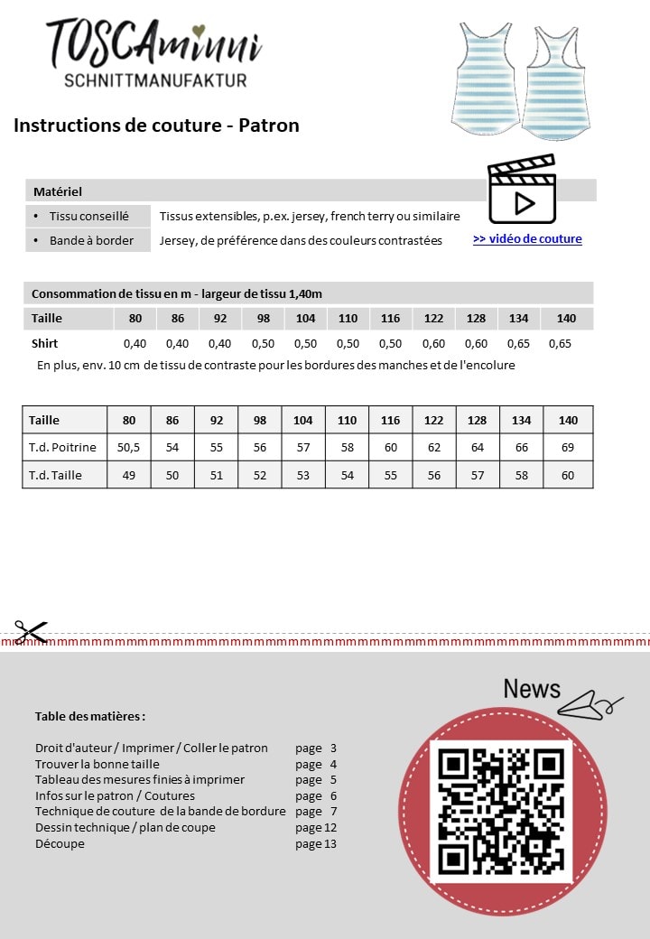 Avec le patron Kris, tu peux coudre un cool tanktop pour enfants. L’été arrivera certainement et si ce n’est pas le cas, tu peux aussi coudre des maillots de corps pour les sous-vêtements.