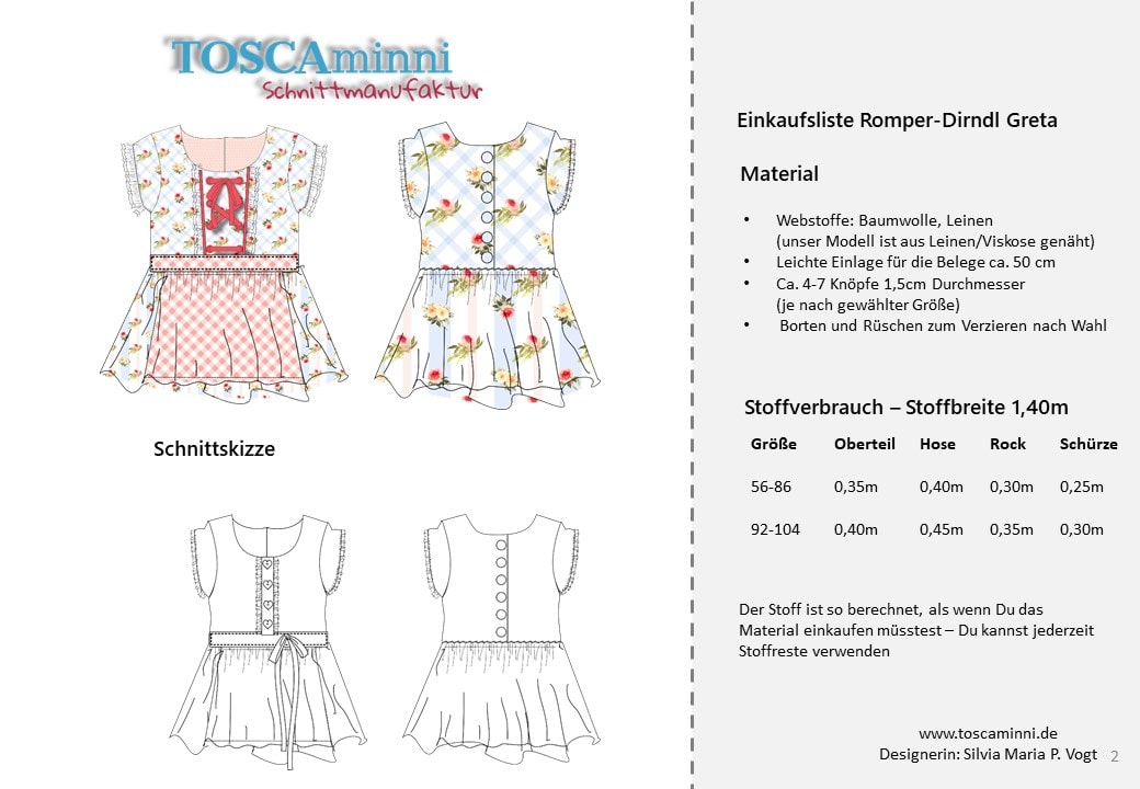 Schnittmuster Dirndl Greta Gr. 56-104 für Babies