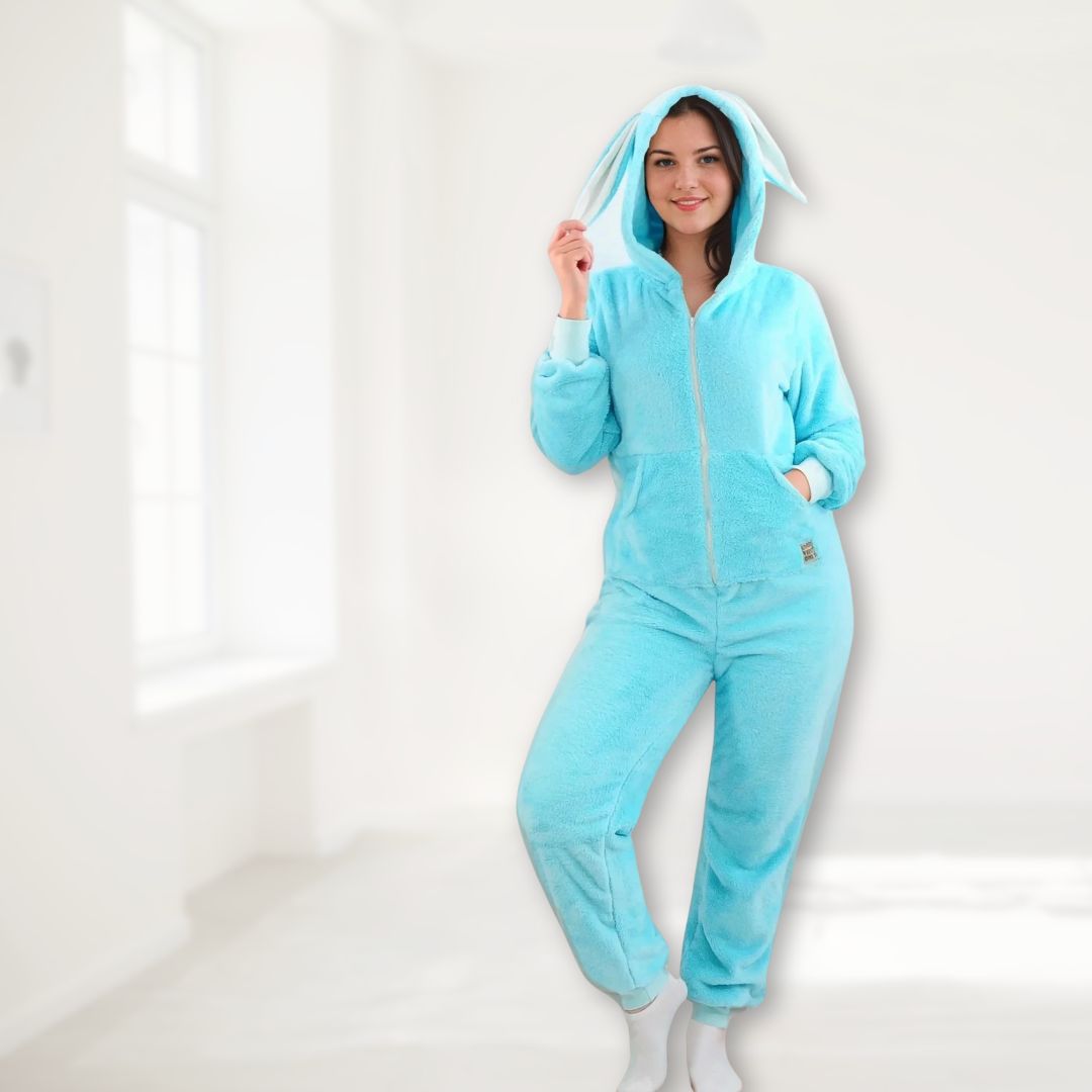Mit dem Schnittmuster Elna nähst Du Dir einen frechen Overall oder Jumpsuit mit Hasenohren. Der Overall ist superbequem zu tragen und hält bei kühlen Temperaturen kuschelig warm.