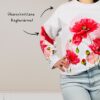 Am besten eignen sich schwere Sweatstoffe mit mind. 330g – 380g, Fleece oder Alpenfleece. Für eine sportliche Variante kannst du unifarbene Stoffe wählen, für einen besonderen Look den digitalen Mohnblumen-Print. Von leichten Stoffen raten wir ab, da das Shirt Oversize geschnitten ist und sackartig wirken würde.