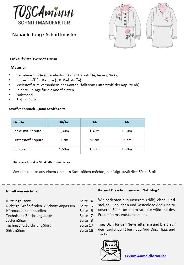 Schnittmuster Twinset Osrun Gr. 34-46 Jacke + Shirt