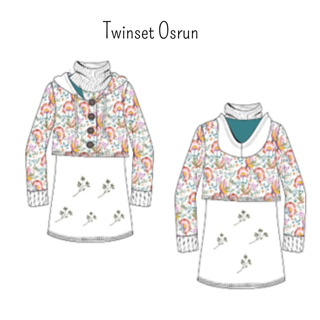 Das Schnittmuster für das Twinset Osrun besteht aus einem Rollkragenpullover und einer frechen Kapuzenjacke. Der Pullover kann mit oder ohne Ärmel genäht werden. Je nach Stoffwahl kannst Du Dein Twinset mit frechen Stoffen kombinieren oder klassisch aus einheitlichen Stoffen nähen. Es lässt vielfältige Kombinationen zu und kann frech, romantisch oder klassisch elegant kreiert werden.
