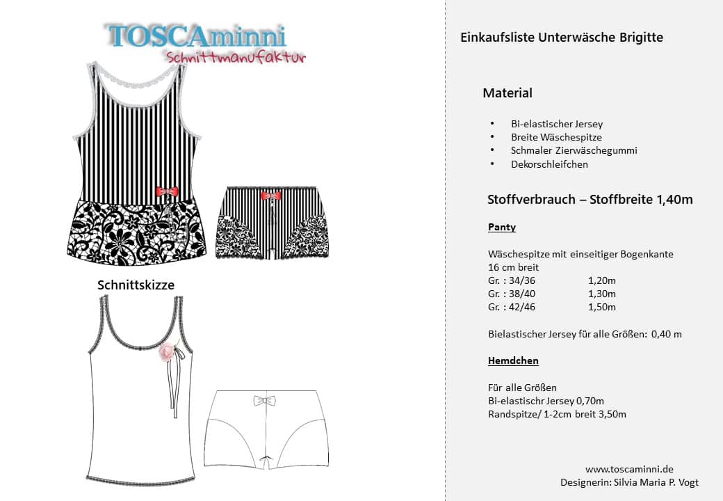 Schnittmuster Unterwäscheset Brigitte