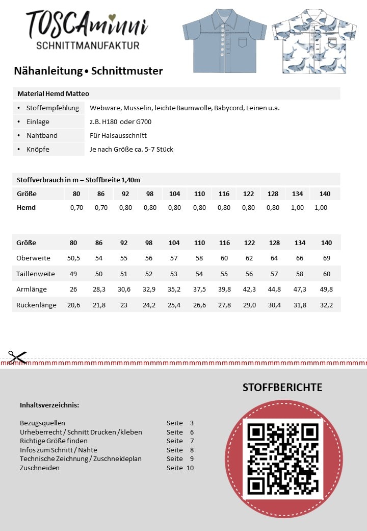 Schnittmuster Kinder Hemd Matteo mit Passe Gr. 80-140