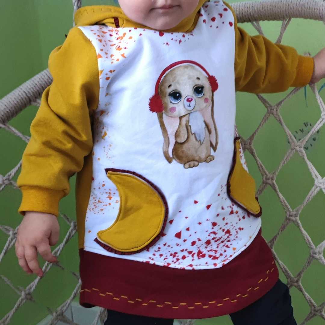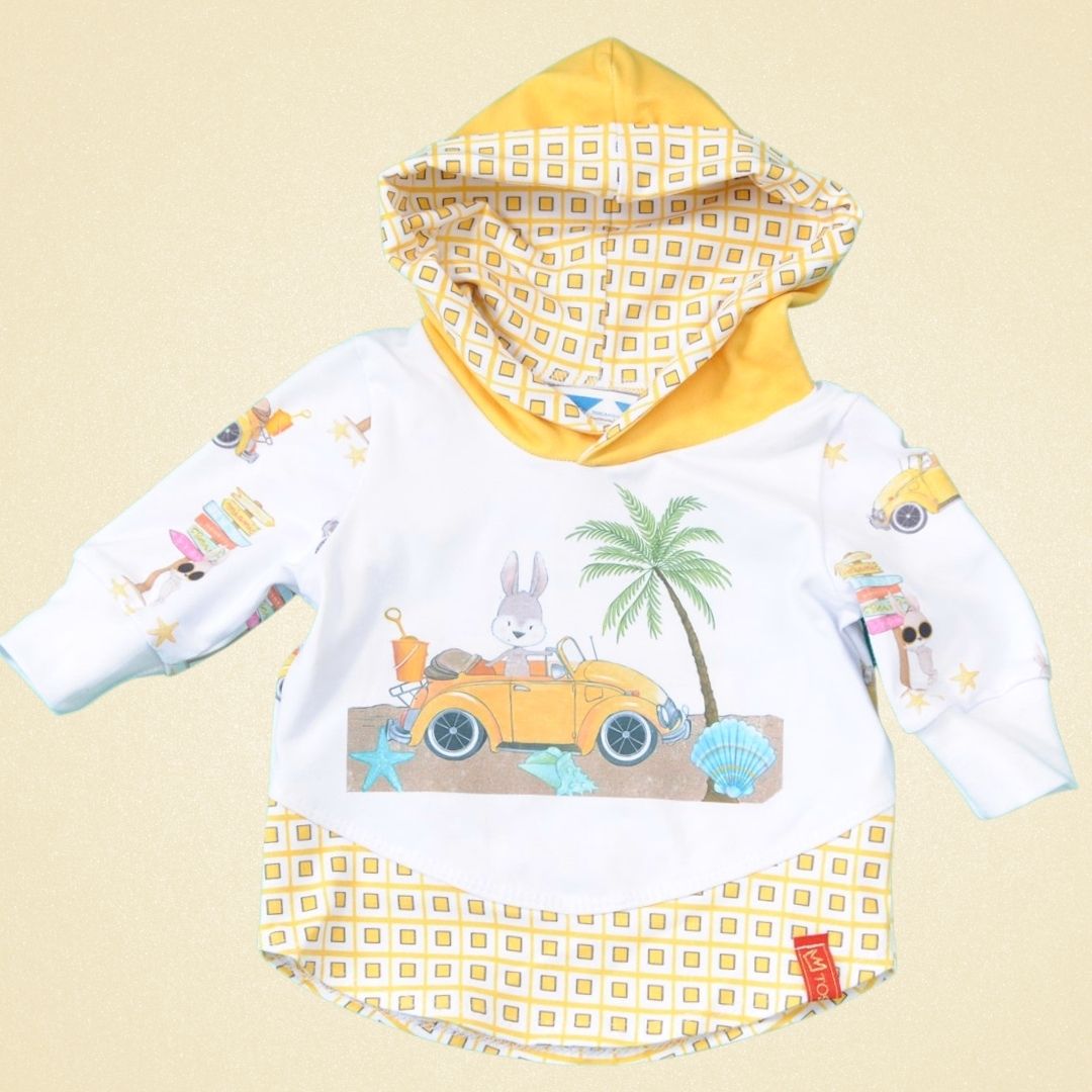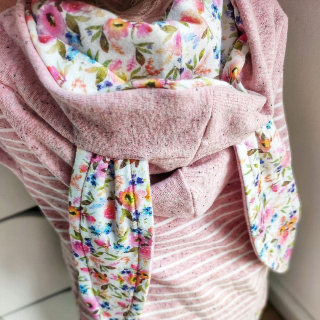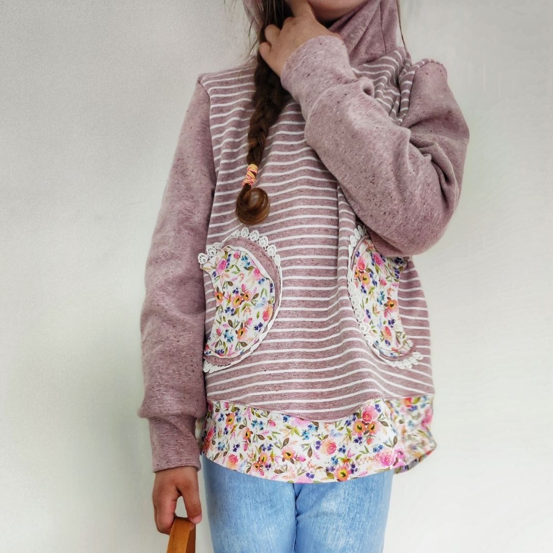Mit dem Schnittmuster Lisa und Bosse nähst Du Dir einen pfiffigen Kinderhoodie aus Jersey. Der Schnitt ist sowohl für Jungs als auch für Mädchen geeignet.