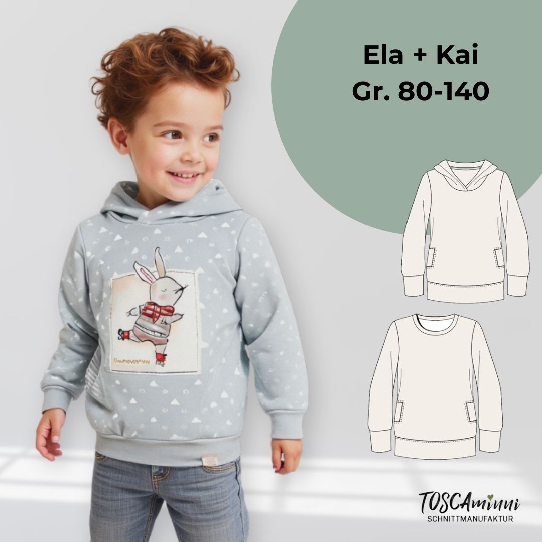 Schnittmuster Kinderhoodie Ela+Kai Gr. 80-140