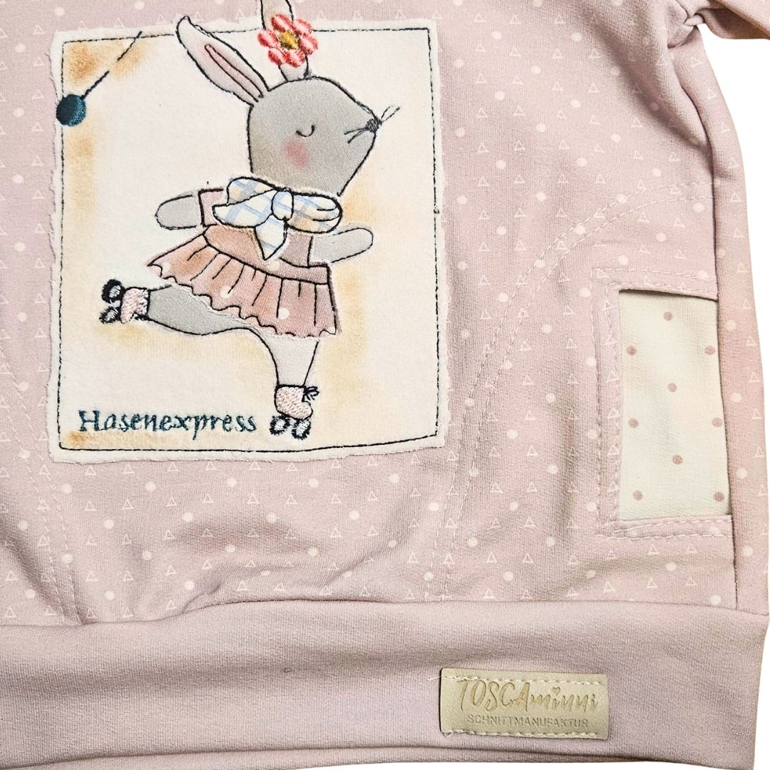 Zusätzlich zur passenden Stickdatei für das Hasenmotiv – wahlweise Hasenjunge oder Hasenmädchen – rundest du dein Projekt harmonisch ab.