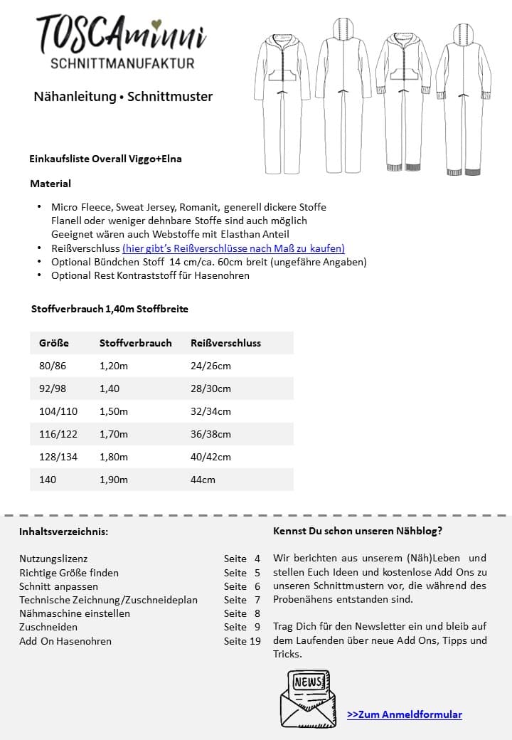 Mit dem Schnittmuster Viggo+Elna nähst Du einen frechen Overall oder Jumpsuit für Kinder (unisex). Wer will kann die Kapuze mit Hasenhohren nähen, so wird er besonders niedlich.