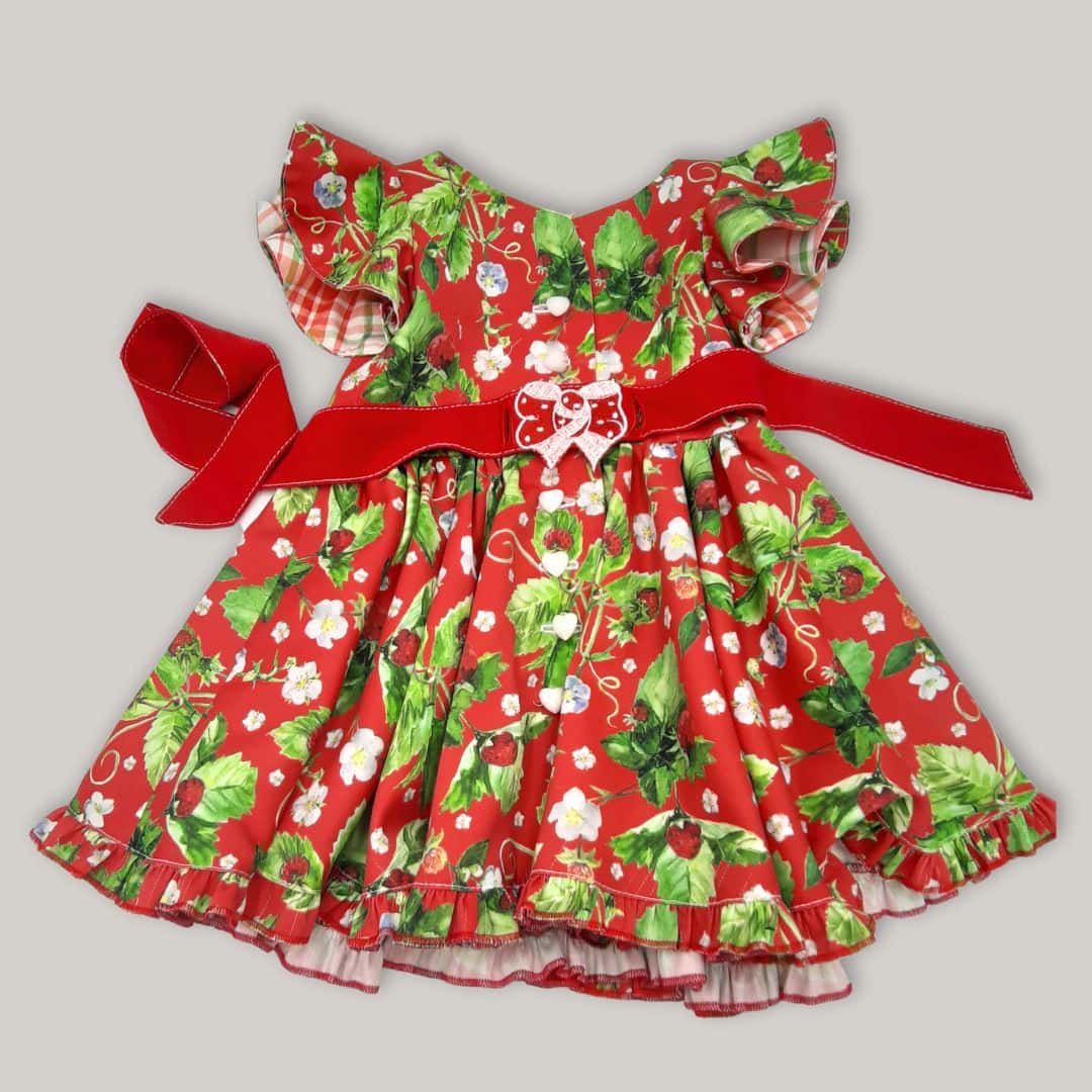 Das Oberteil kann mit vier verschiedenen Ärmelvarianten kombiniert werden, wodurch sich das Kleid immer wieder neu gestalten lässt. Zarte Rüschen verleihen dem Kleid eine romantische Note, was es zum perfekten Mädchenkleid macht.
