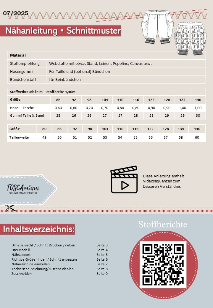 Schnittmuster Kinderhose Zoè + Nico Gr. 86-140 – lässige Pumphose ✂️👖