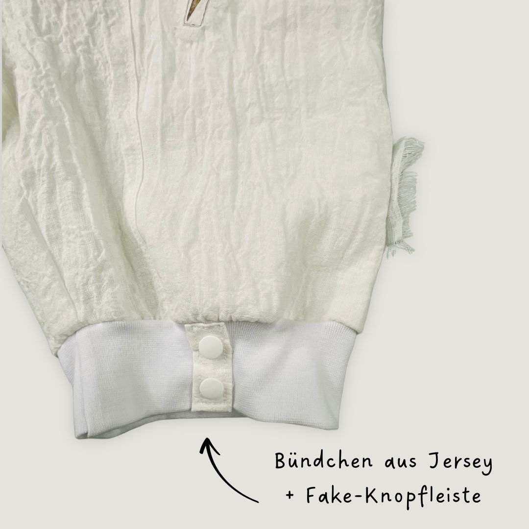 - Stoffempfehlung: Webware, z.B. Leinen, Musselin, Baumwollstoffe u.a.