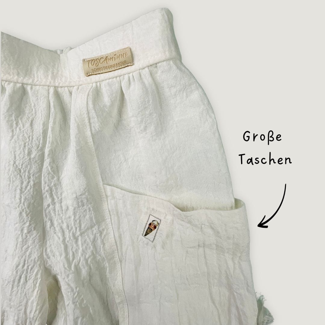 - Große Eingriffstaschen (optional glatt oder gerafft (Add On)