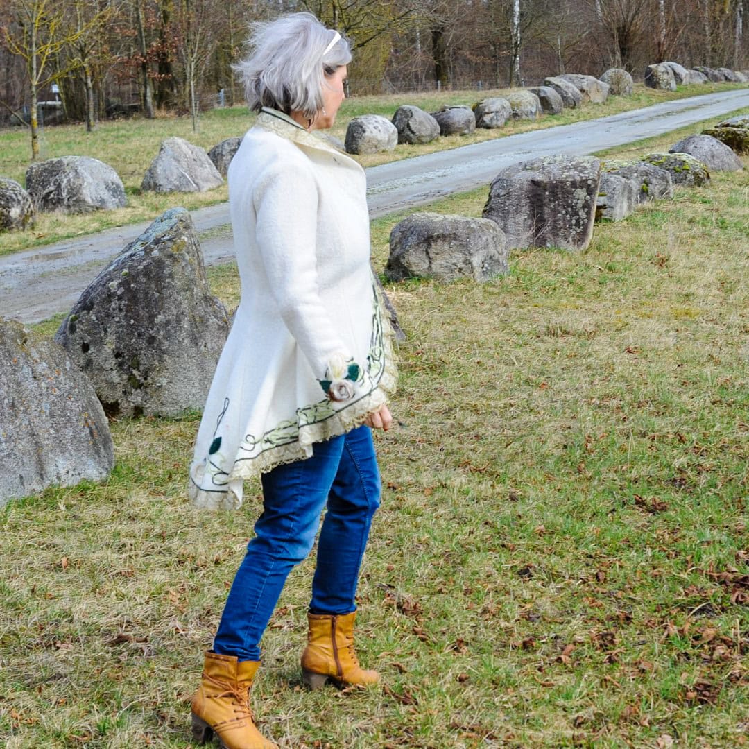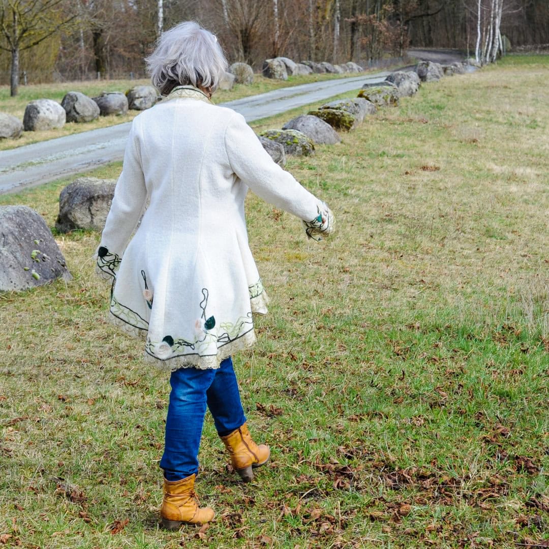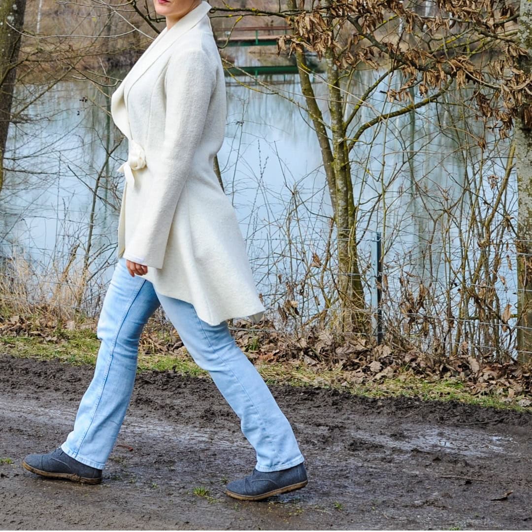 Das Schnittmuster Cilli ist eine elegante Damenjacke. Die Godets sind ein besonderes Highlight, und verleihen der Jacke einen gewissen Vintage-Look. Gleichzeitig ist sie tailliert geschnitten, zudem Vokuhila – also vorne kurz und hinten lang.