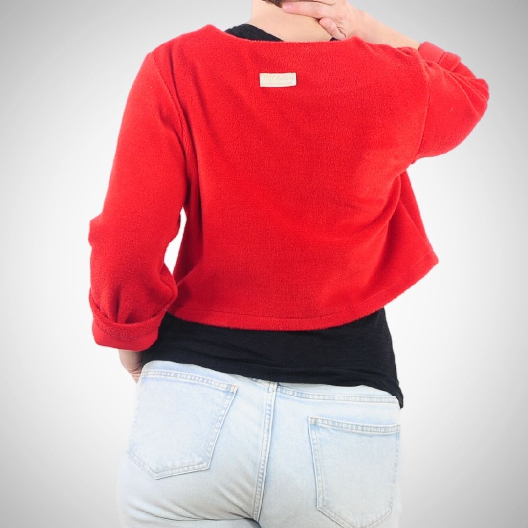 - Stoffempfehlung: dickere Kuschel-Stoffe, z.B. Alpenfleece, Sweat-Jersey, Bouclé, Jaquard-Jersey- dehnbare Stoffe