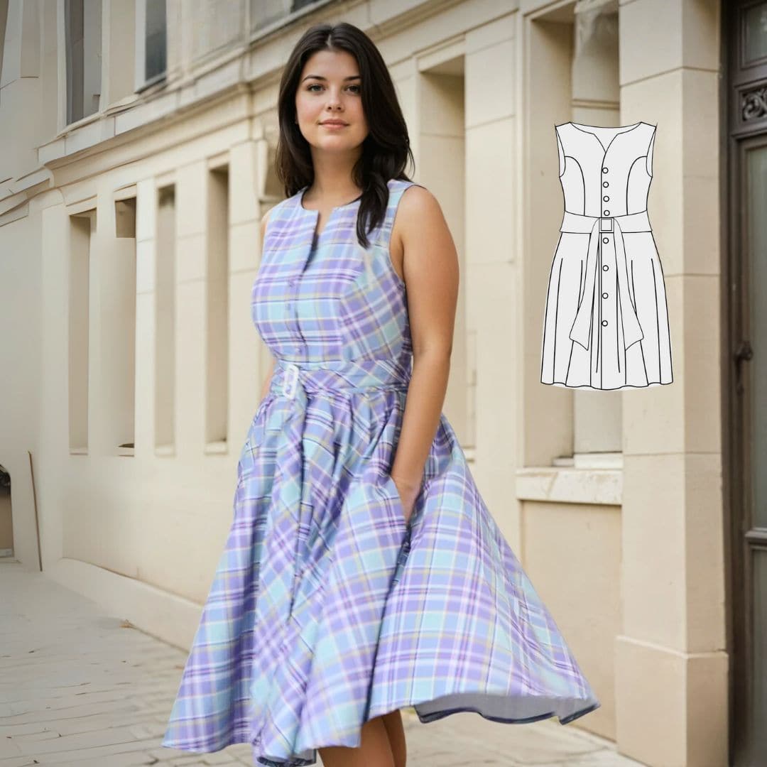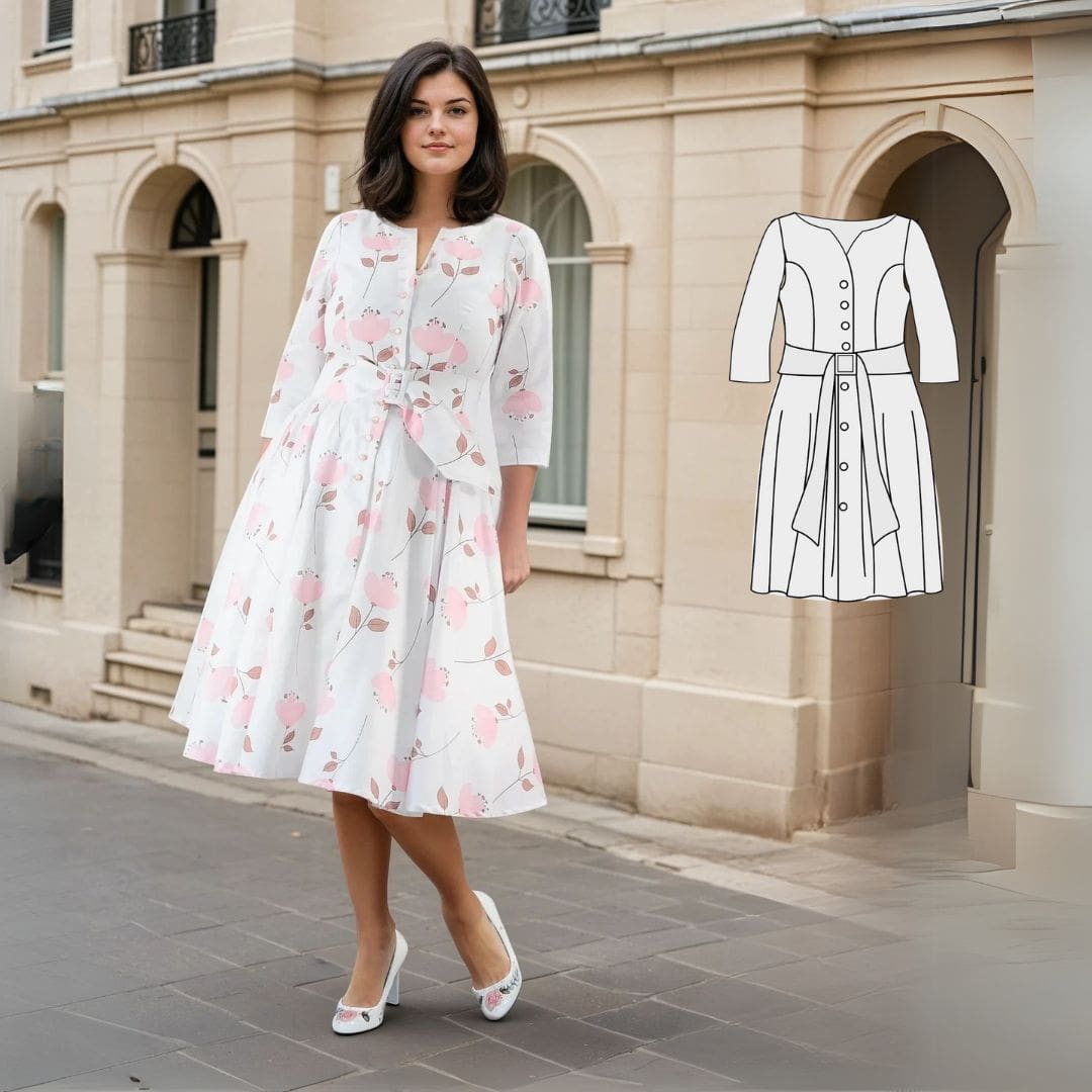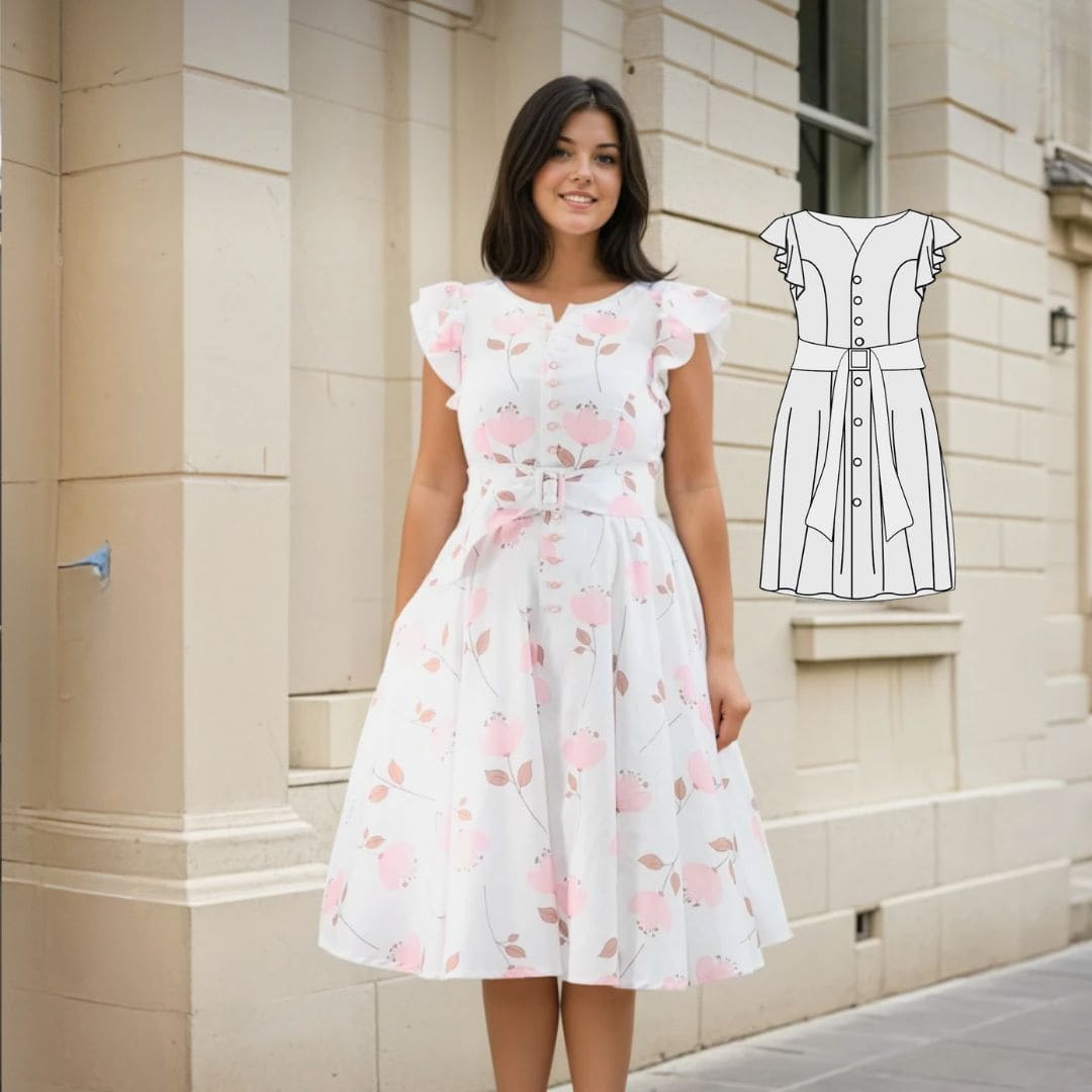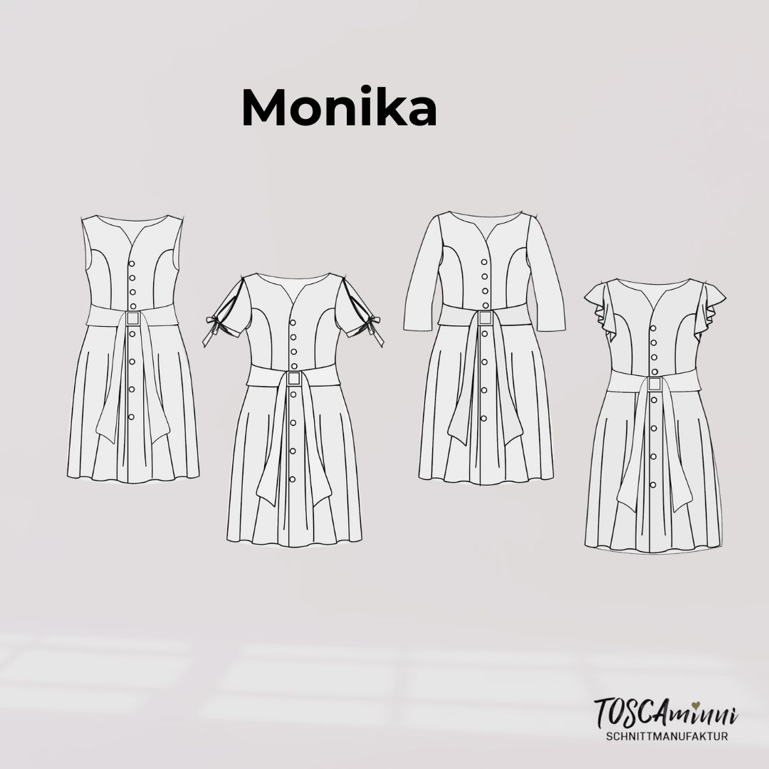Entdecke das bezaubernde Schnittmuster Monika – ein romantisches Kleid im Vintage-Look! Das Kleid wird aus Webware genäht und ist vorne durchgehend geknöpft, wodurch es einen Hauch von Nostalgie versprüht. Das Oberteil des Kleides kannst du ganz nach deinem Geschmack ärmellos gestalten oder mit verschiedenen Ärmeloptionen kombinieren, wie z.B. Ärmel mit Bindebändchen, verspielten Volant-Ärmeln oder eleganten 3/4-Ärmeln.