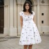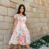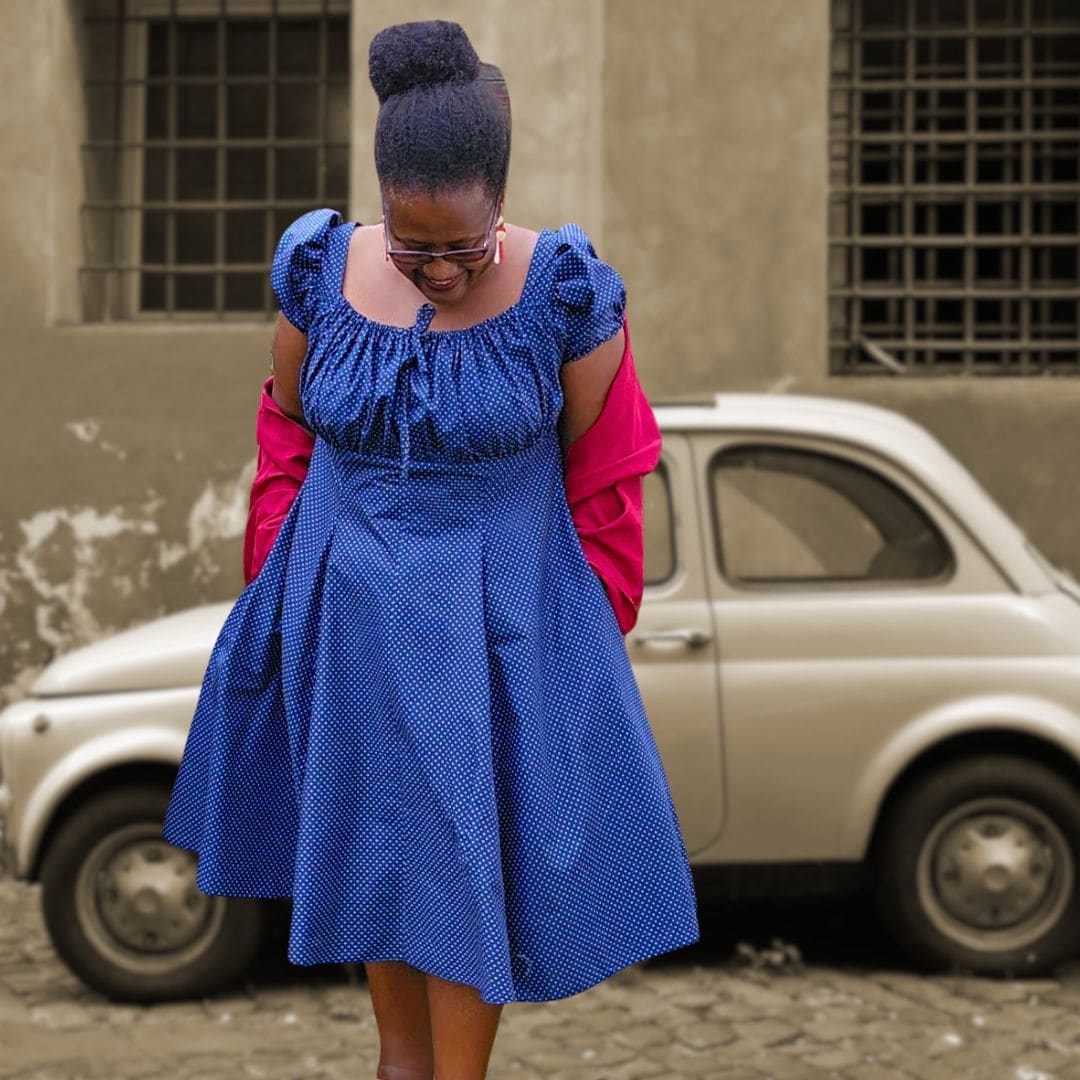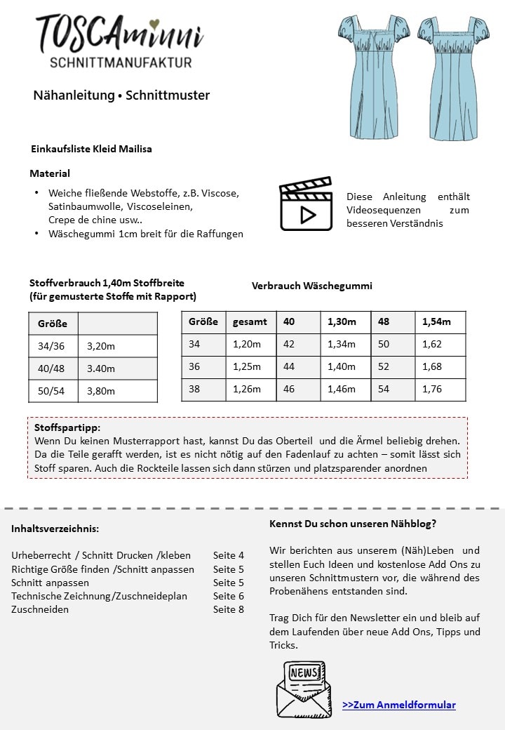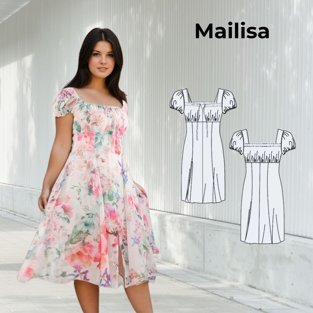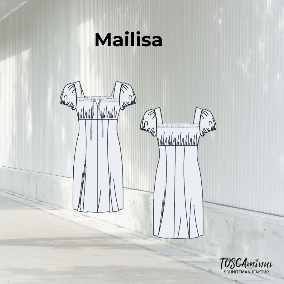 Romantisch, feminin und verspielt – diese Worte beschreiben das Schnittmuster für das Sommerkleid Mailisa perfekt. Das vielseitige Kleid eignet sich für jeden Anlass. Das enganliegende, geraffte Oberteil mit den süßen Puffärmeln verleiht eine figurbetonte Silhouette, während der weitschwingende Rock dennoch luftig-leicht wirkt. Der eckige Ausschnitt ist mit einem kleinen Schlitz versehen, an dem niedliche Bindebändchen herunterbaumeln. Die Raffungen am Ausschnitt werden mit Wäschegummi gearbeitet. Für das Kleid haben wir fließende Webware wie Viskose, Satinbaumwolle, Viskoseleinen oder Crepe de Chine verwendet.