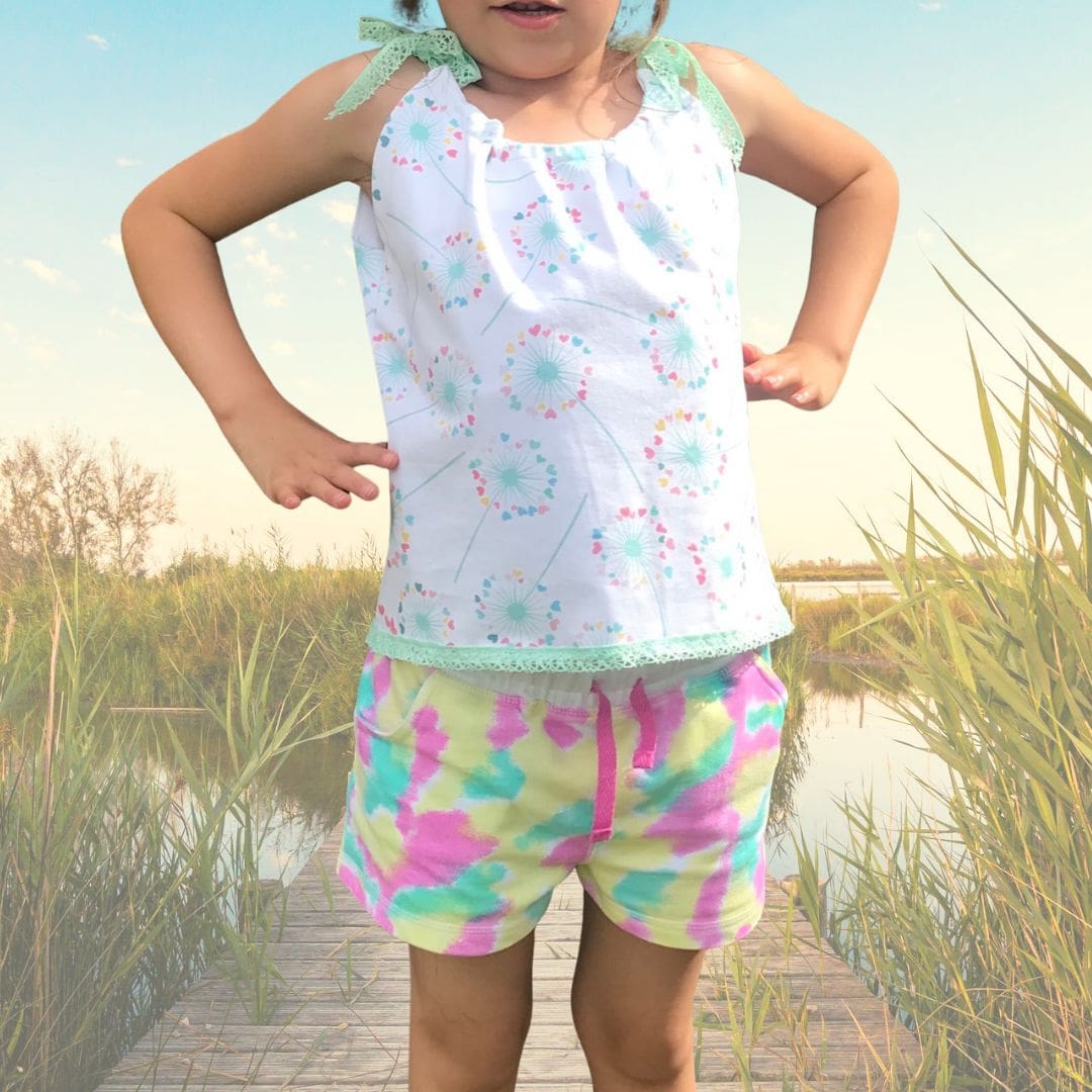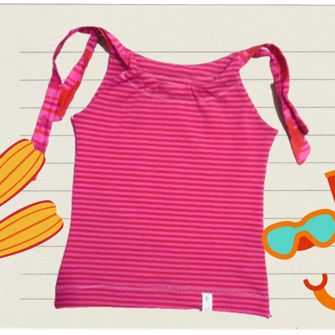 Das Shirt Ilva ist perfekt für heisse Sommertage. Das Shirt wird an den Schultern mit Bindebändchen zusammengebunden. Das Kindershirt ist schnell und einfach genäht. Der Stoff-Verbrauch ist gering und bei den kleinen Größen lassen sich hier gut geliebte Stoffrestchen vernähen.