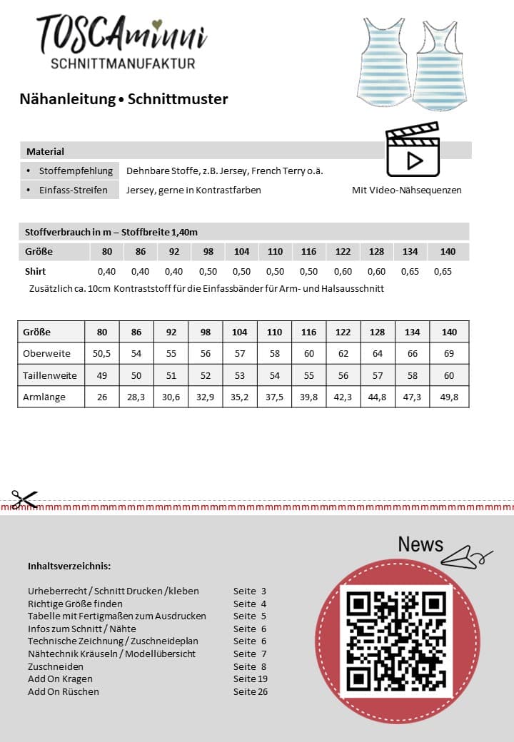 Schnittmuster Kindershirt Kris Größe 80-140 | Tanktop