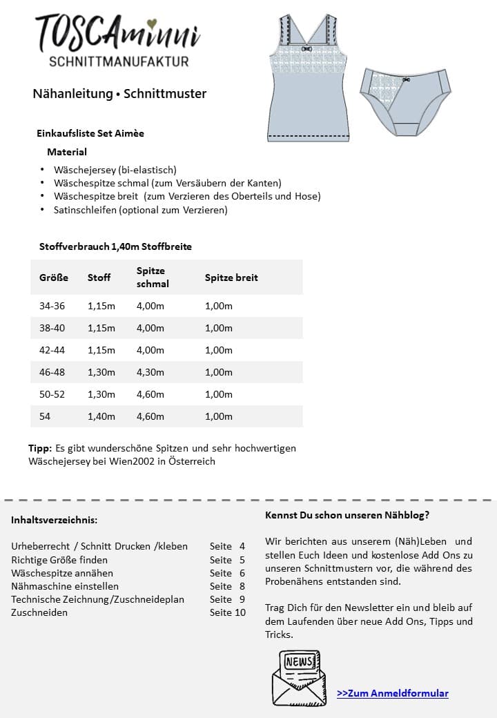 Schnittmuster Unterwäsche-Set Aimèe Größe 34-54