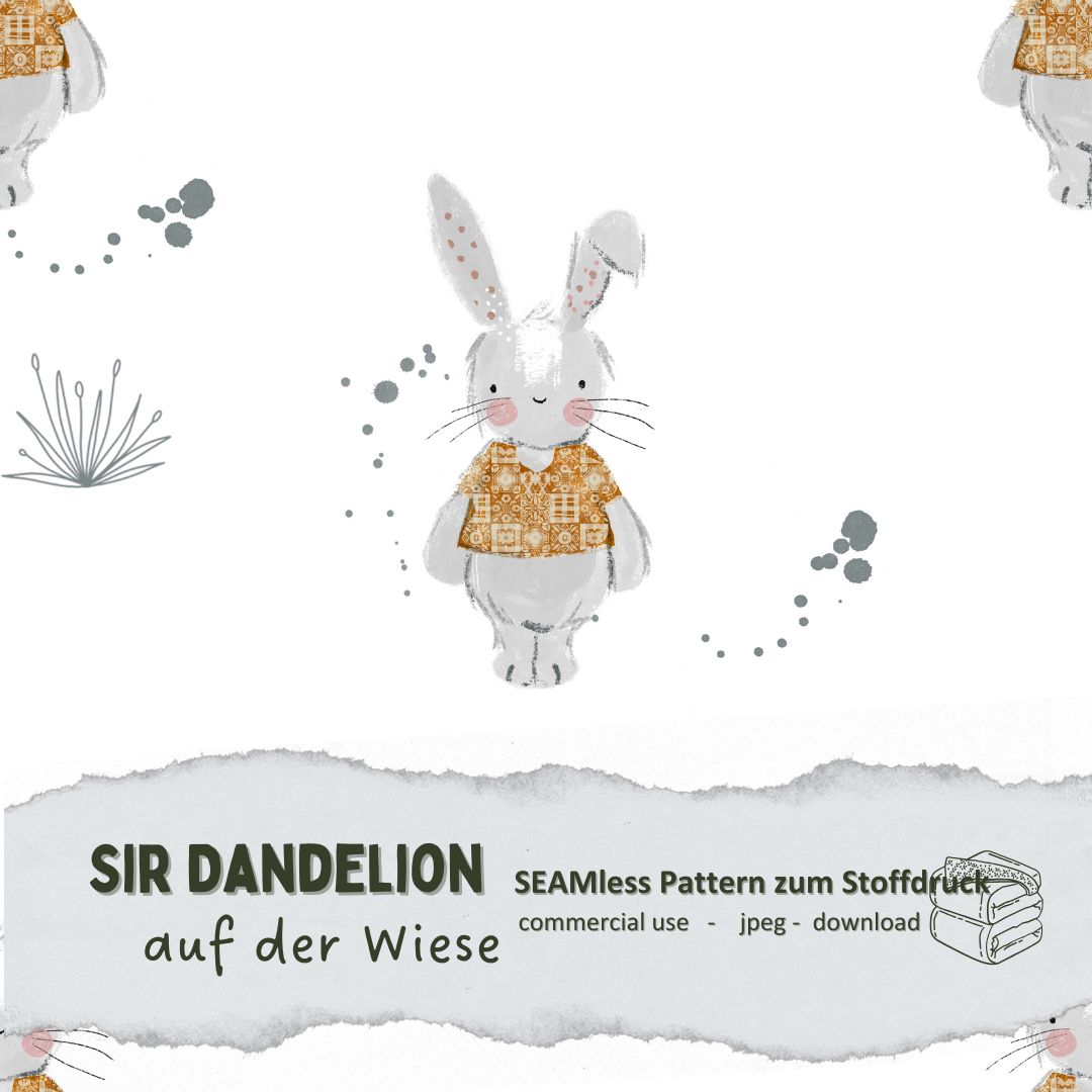 Stoffdesign: Hase auf der Wiese | Seamless Pattern aus unserer Serie „Sir Dandelion“