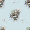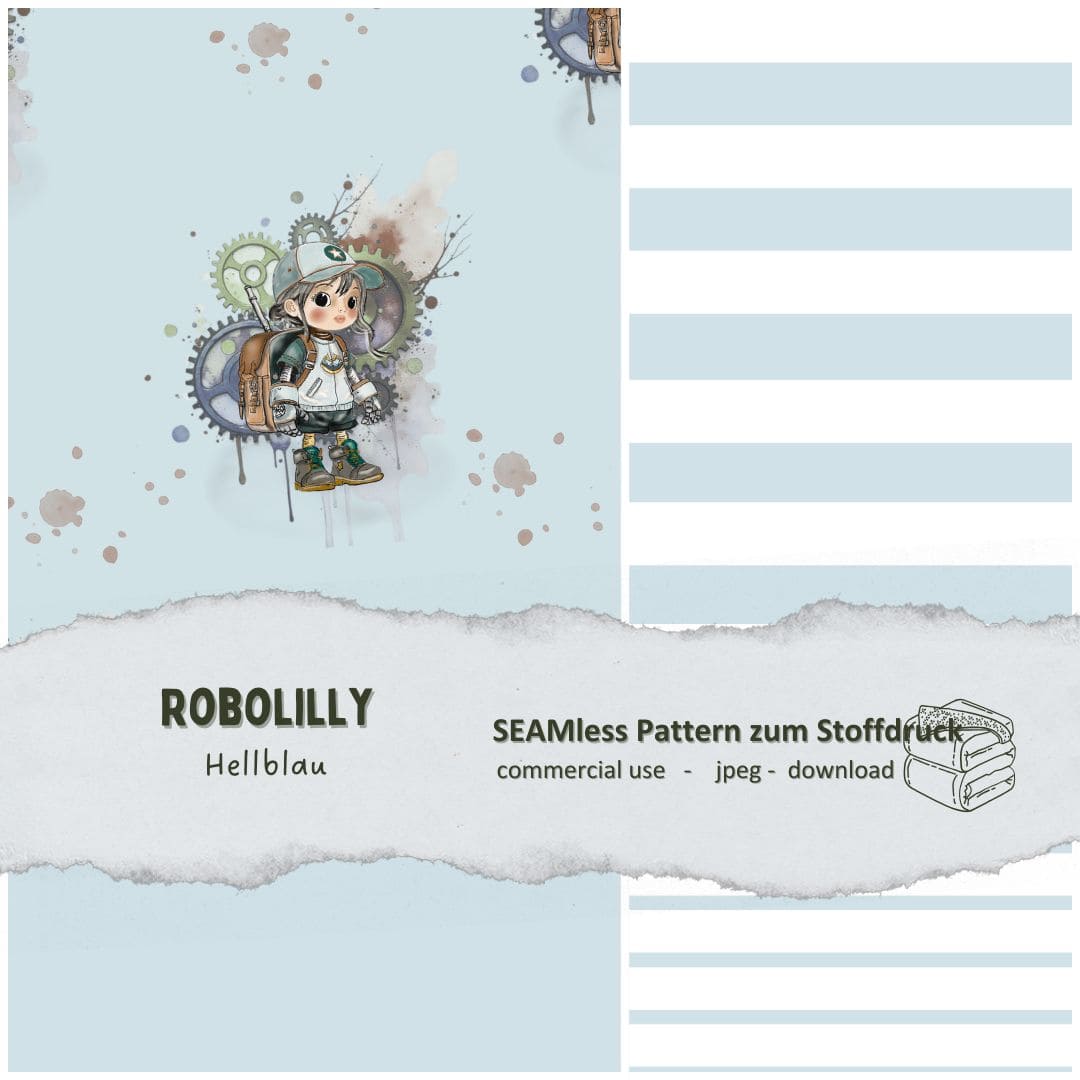 Seamless pattern Robotermädchen Robolilly – hellblau