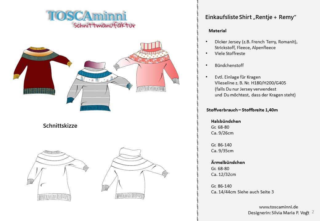 Schnittmuster Fledermausshirt Rentje + Remy 68-140