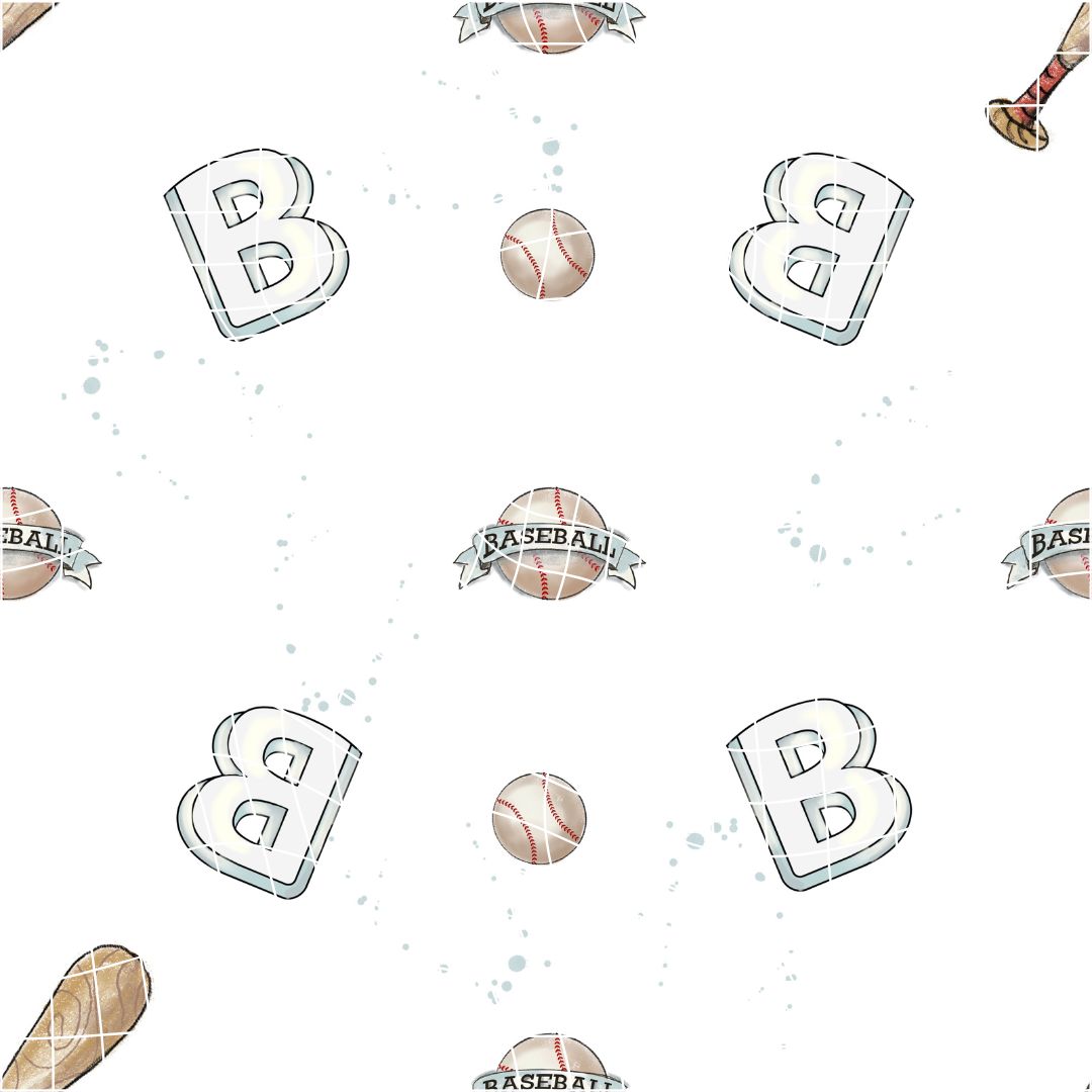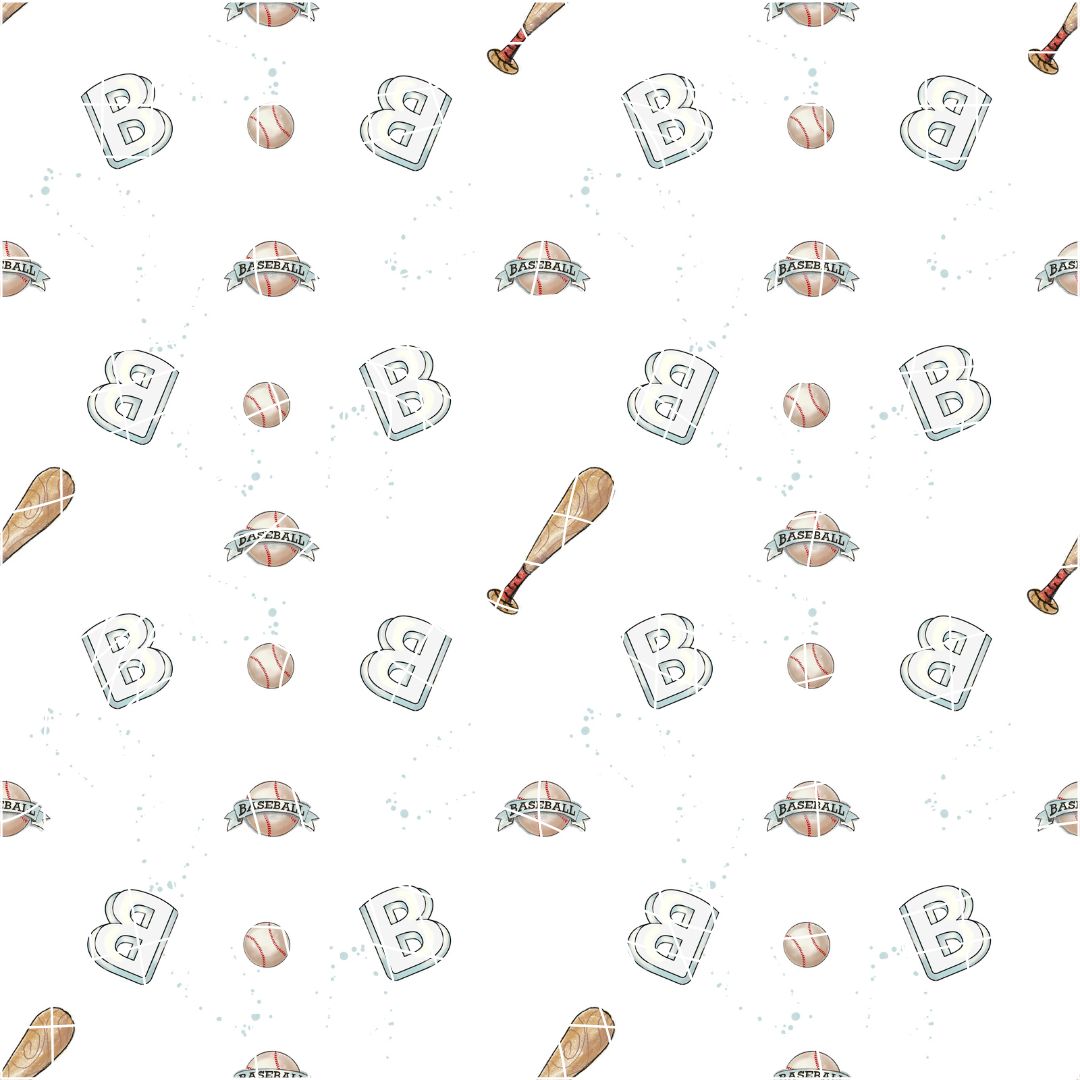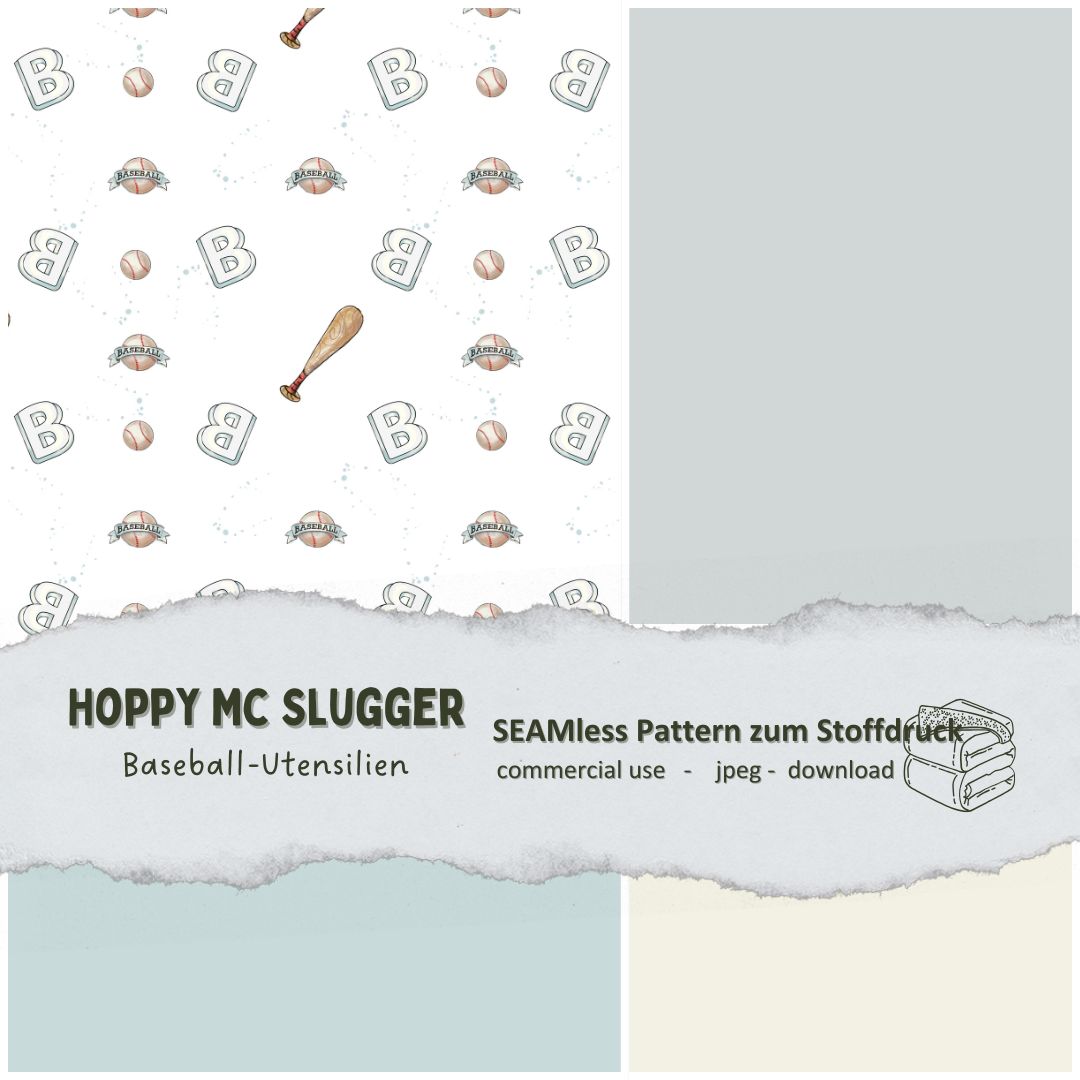 Entdecke unser entzückendes Endlos Muster aus der Hoppy Mc Slugger-Serie: Baseball Utensilien (Seamless Pattern), speziell entwickelt für Kinderstoffe und Textildruck.