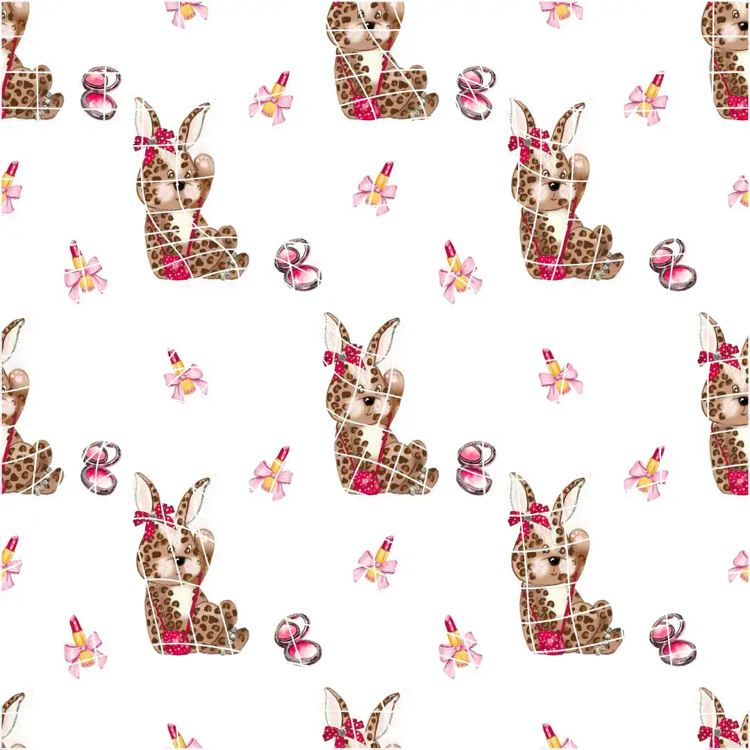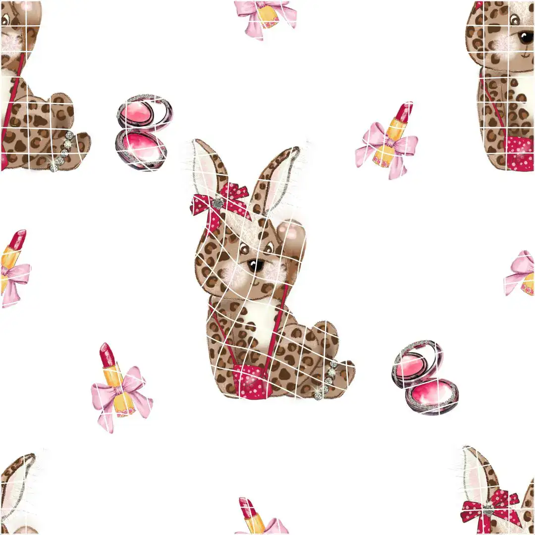 Entdecke unser entzückendes Endlos Muster mit dem hübschen Hasen „Lea Mc Glamour“ im Leopardenlook. Lea Mc Glamour liebt Make-Up und Glitzerschmuck. Seamless Pattern, speziell entwickelt für Textildruck.