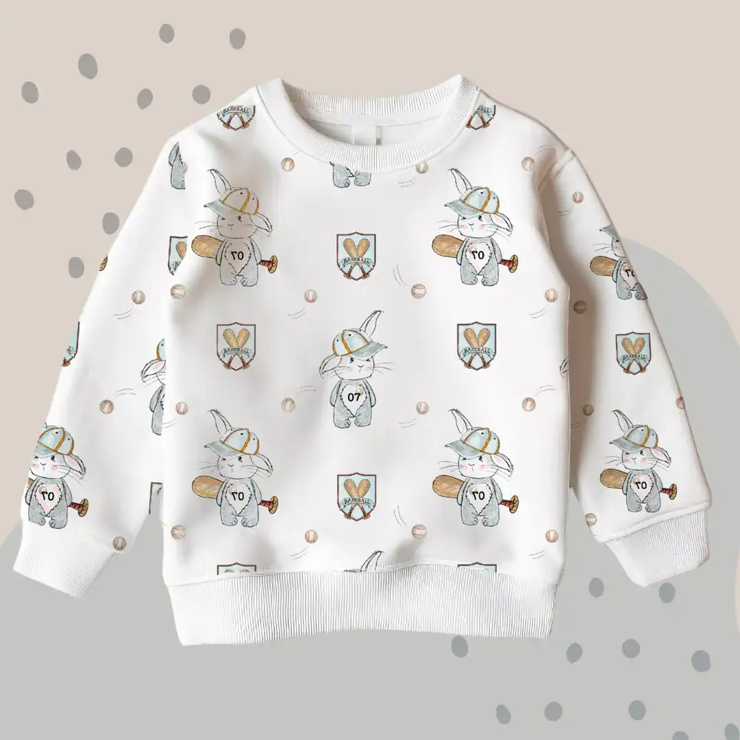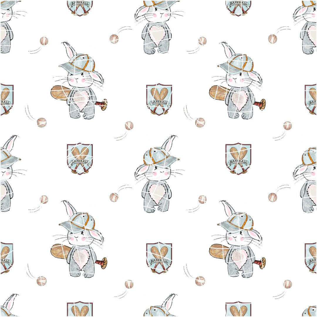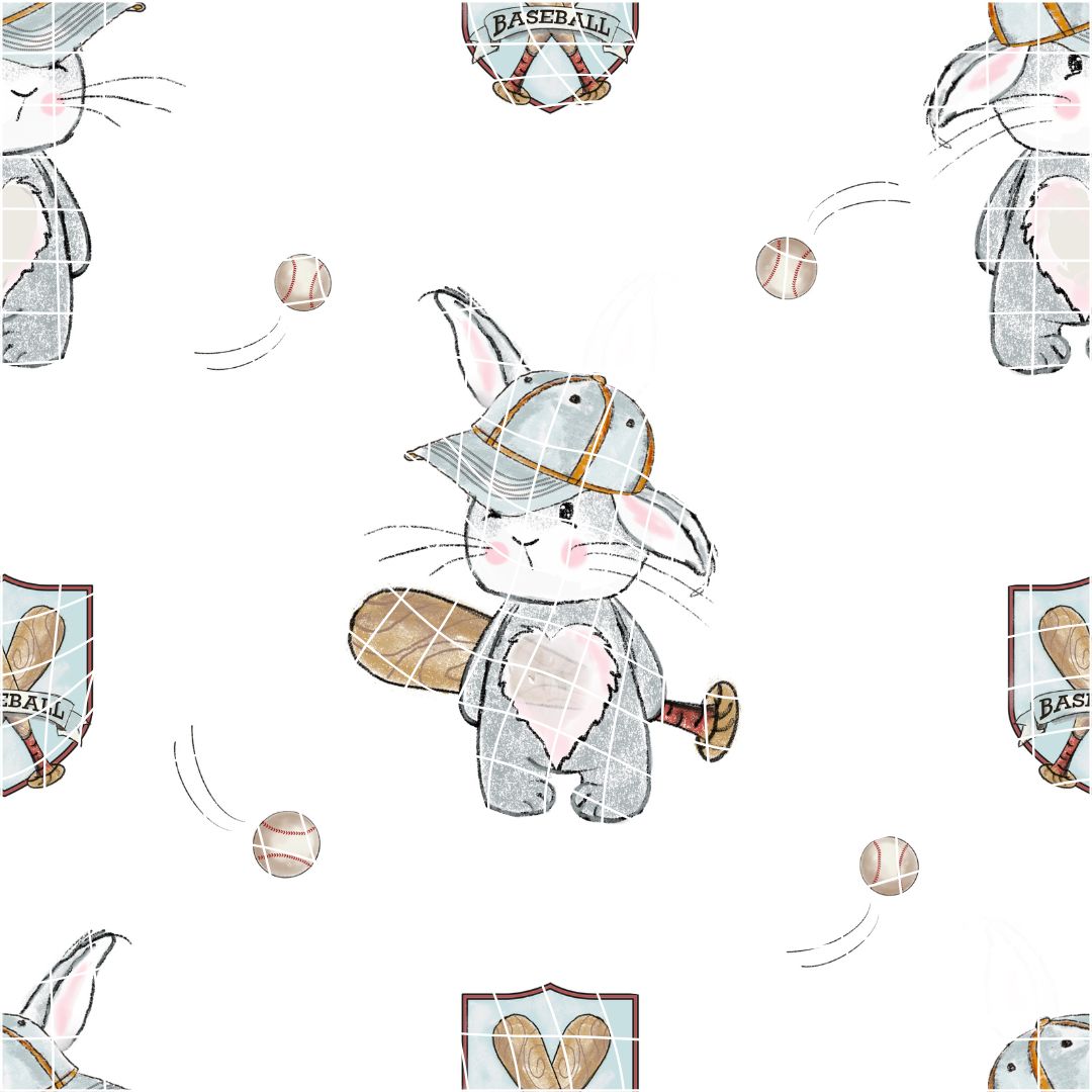 Stoffdesign Hase spielt Baseball 2 – digitaler Stoffdruck