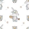 Entdecke unser entzückendes Endlos Muster Hoppy Mc Slugger, der mit Leidenschaft Baseball spielt (Seamless Pattern), speziell entwickelt für Kinderstoffe und Textildruck.