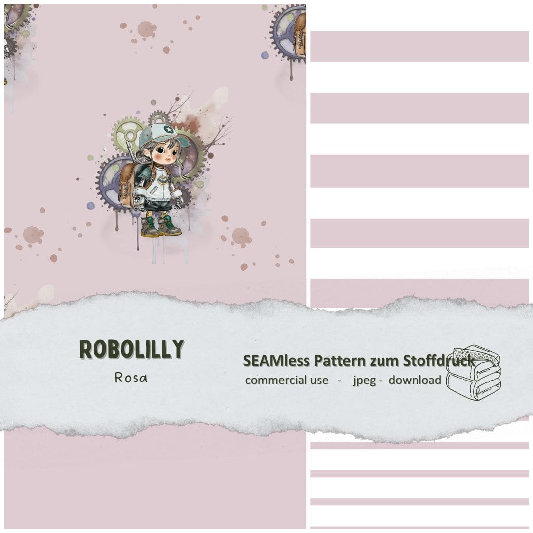 Digitales Stoffdesign Robotermädchen Robolilly – rosa